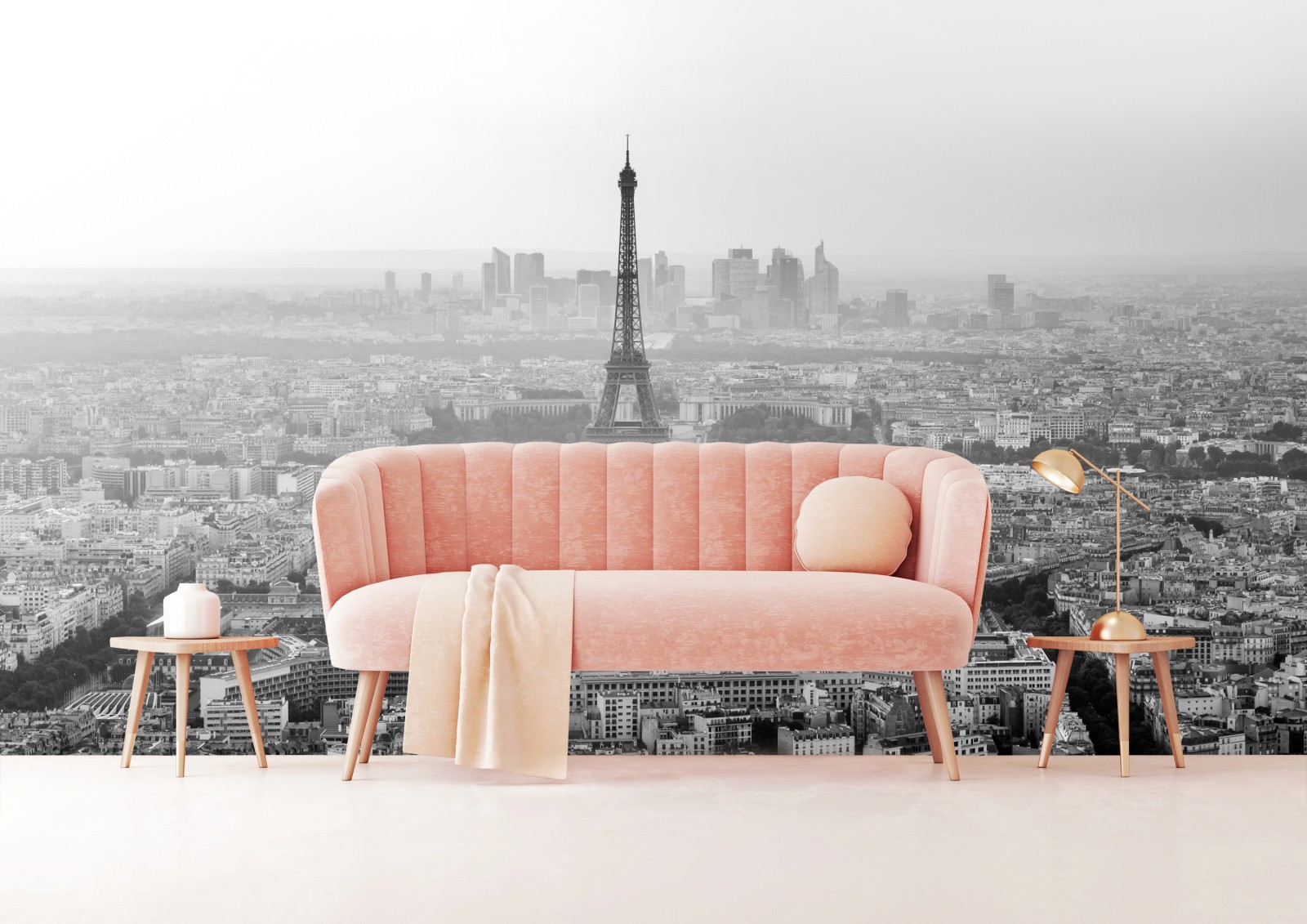 Fototapete Elegante Eiffelturm luftaufnahme in graustufen