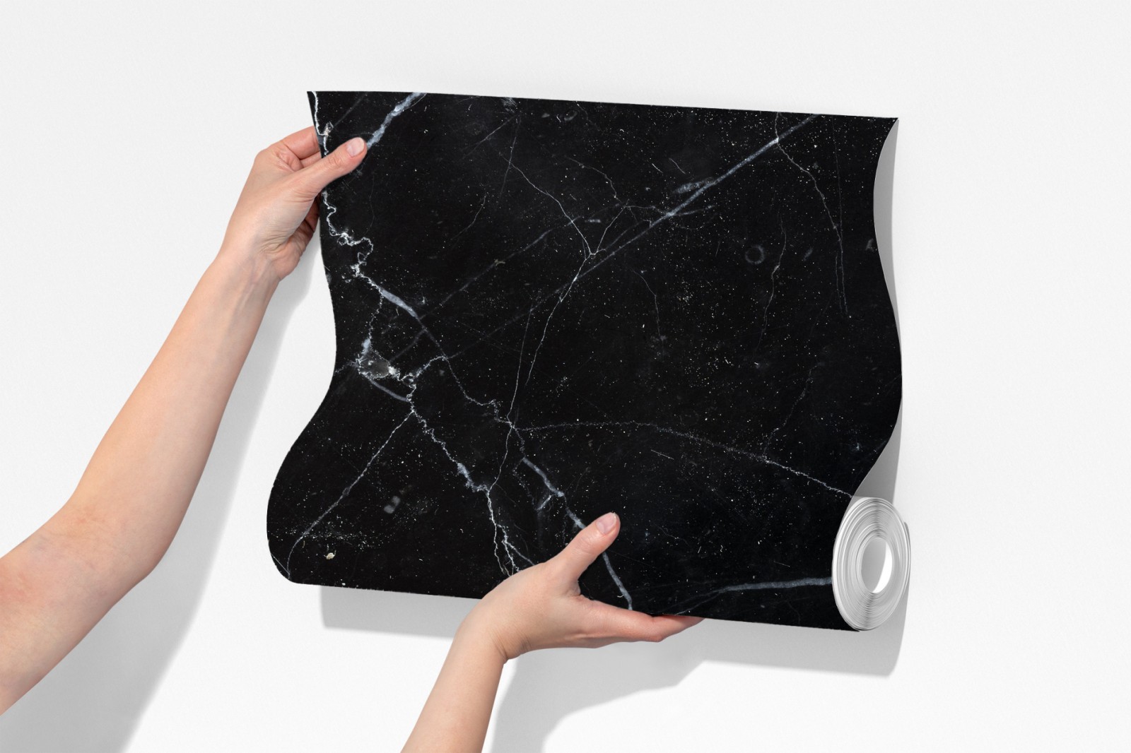 Luxuriöse schwarze Marquina-Marmorstruktur mit eleganten weißen Adern verleiht modernen Räumen Tiefe und Raffinesse.
