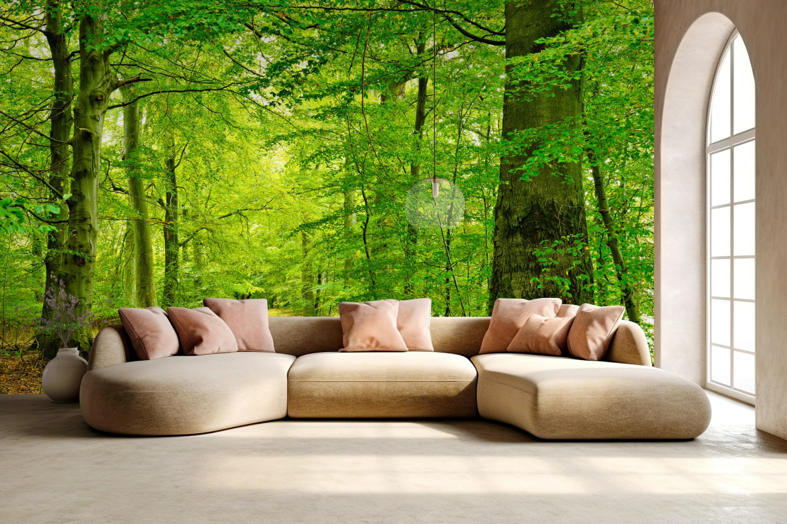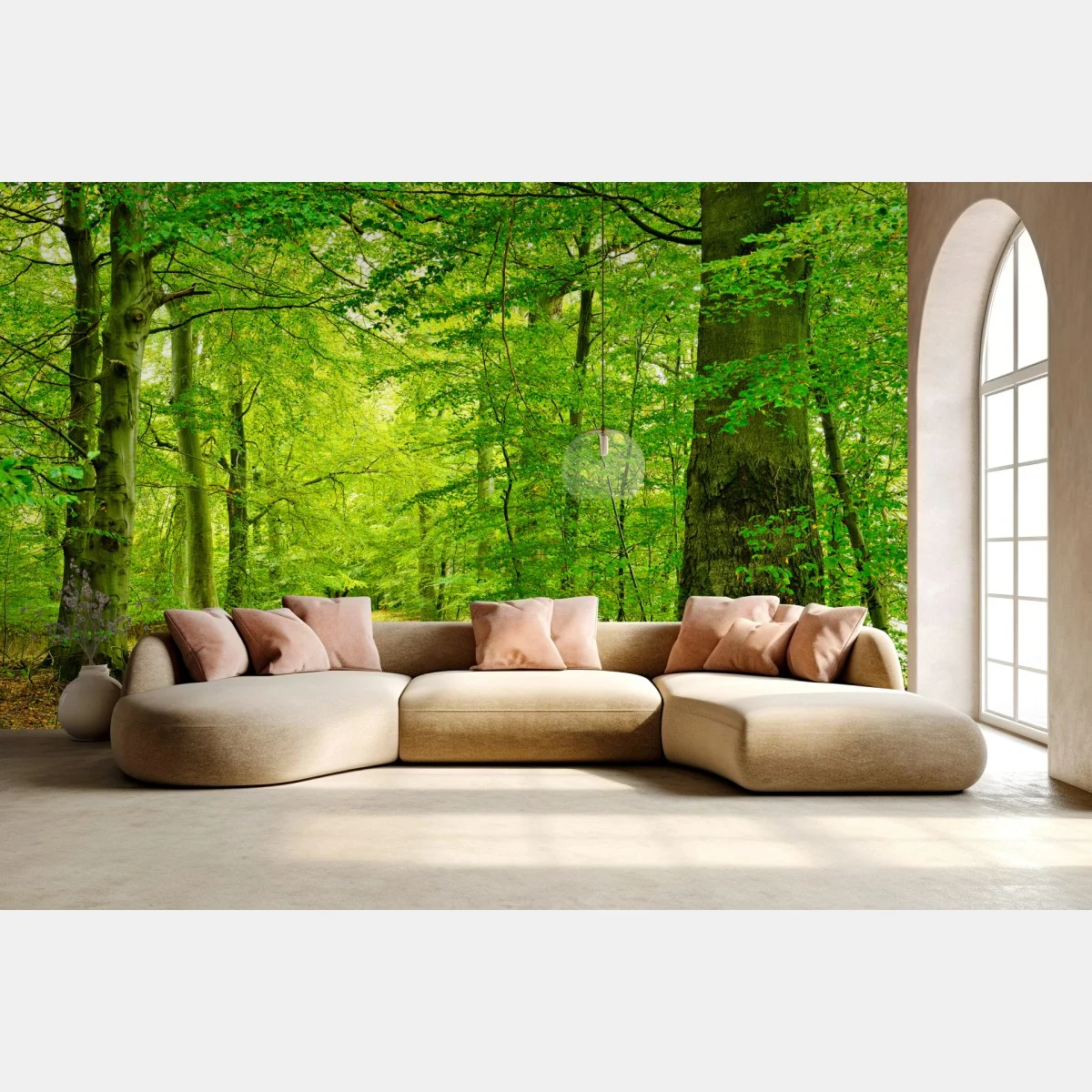 eine beruhigende waldszene, die üppiges grün und eine friedliche waldatmosphäre in ihren raum bringt.MehrWeniger