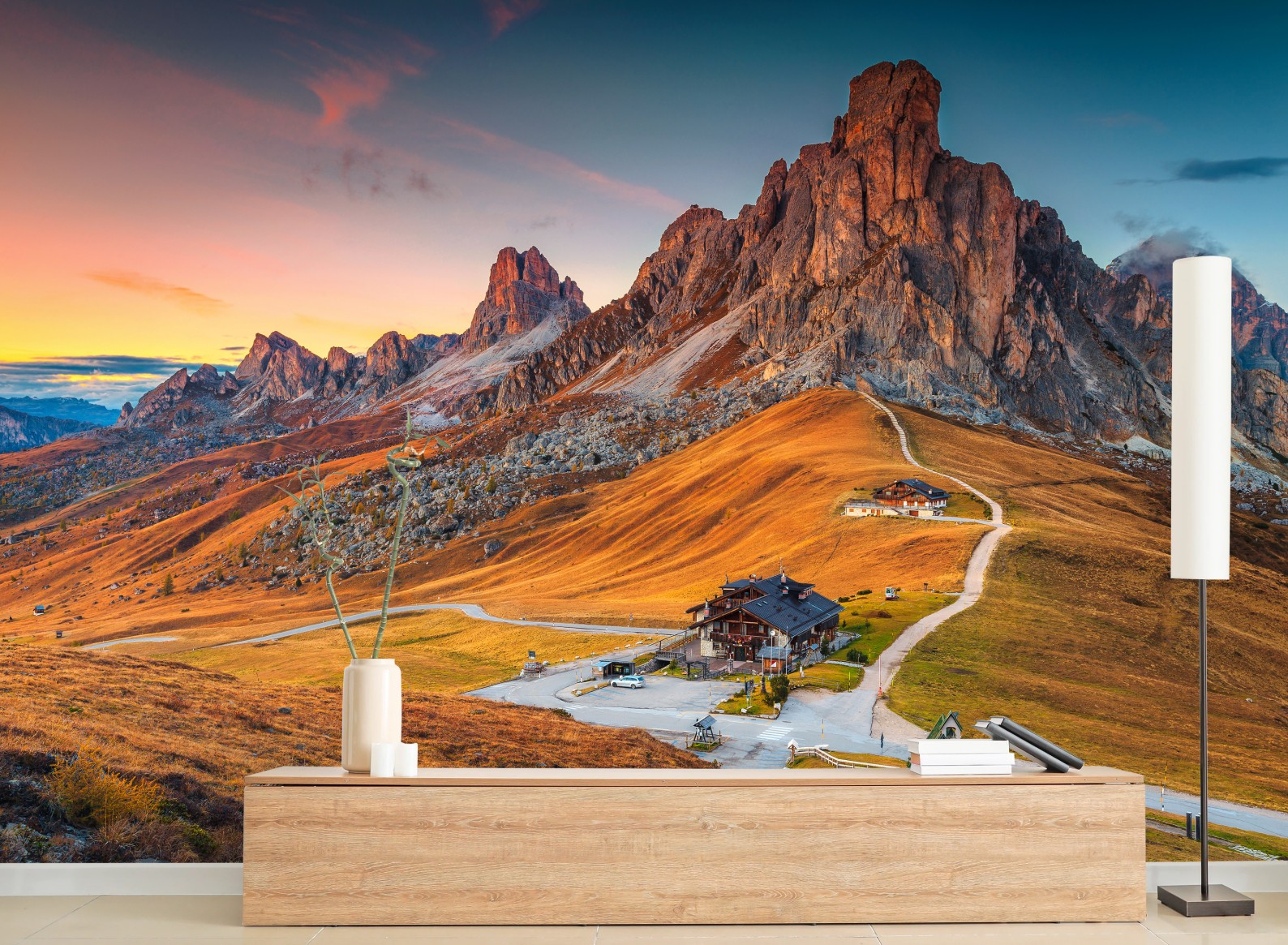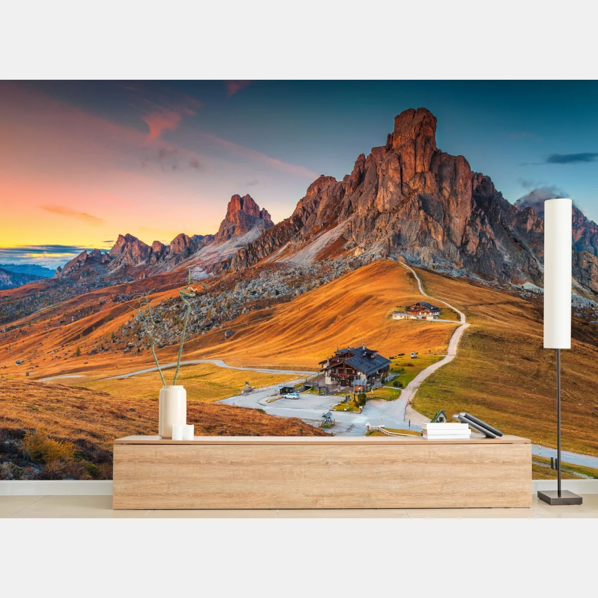 Fototapete Sonnenuntergang über Passo Giau, Dolomiten