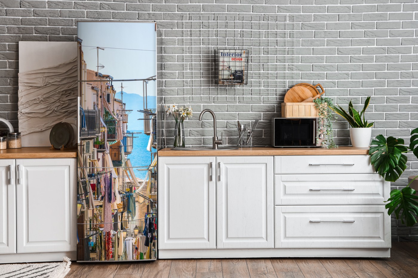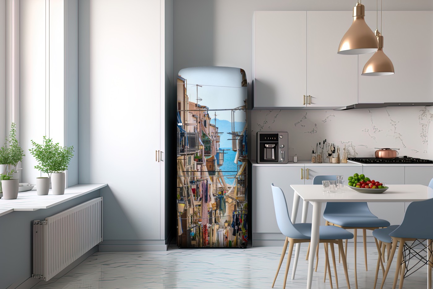 Kühlschrankaufkleber Sonnige gasse mit meerblick und balkonen
