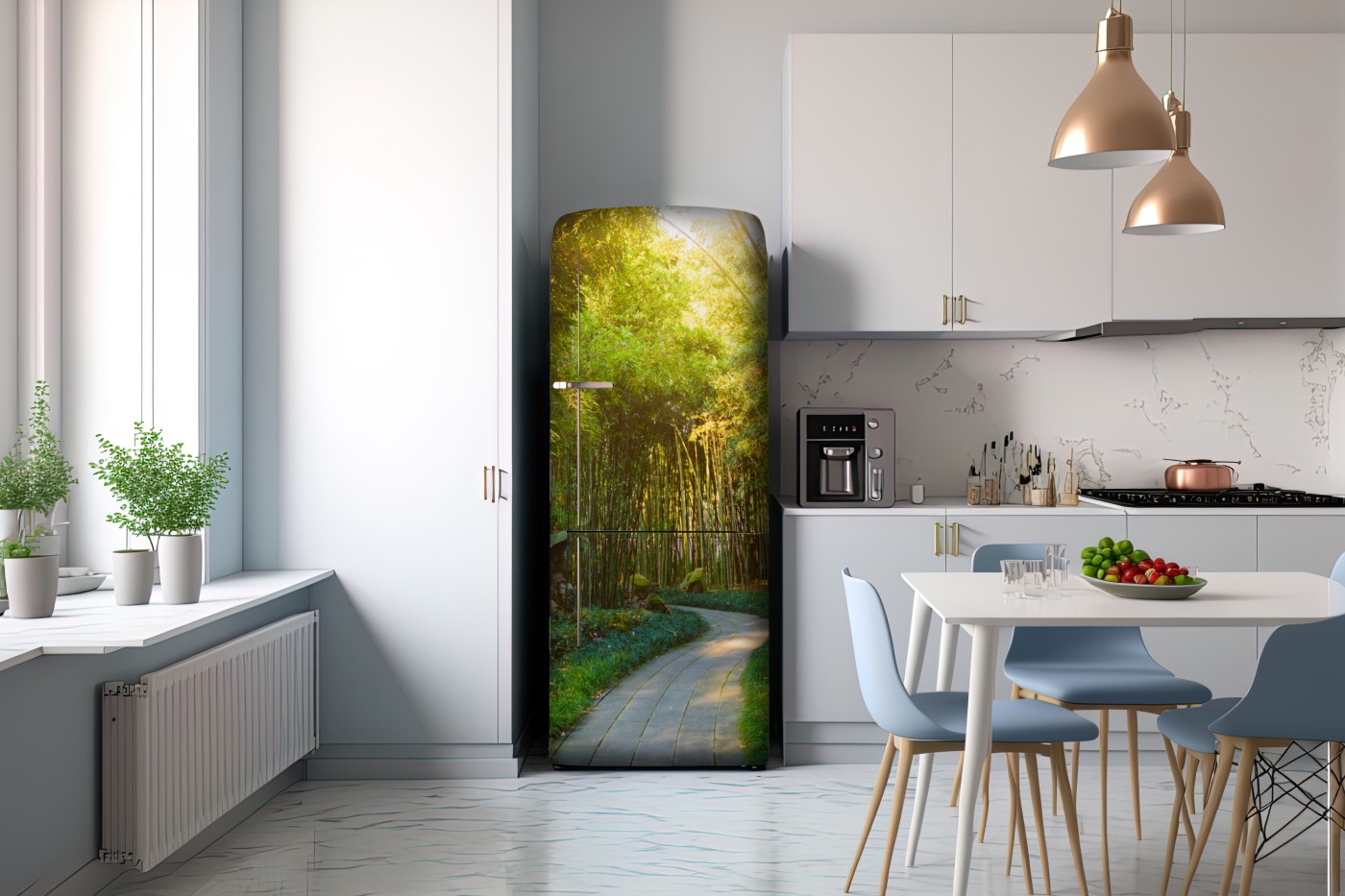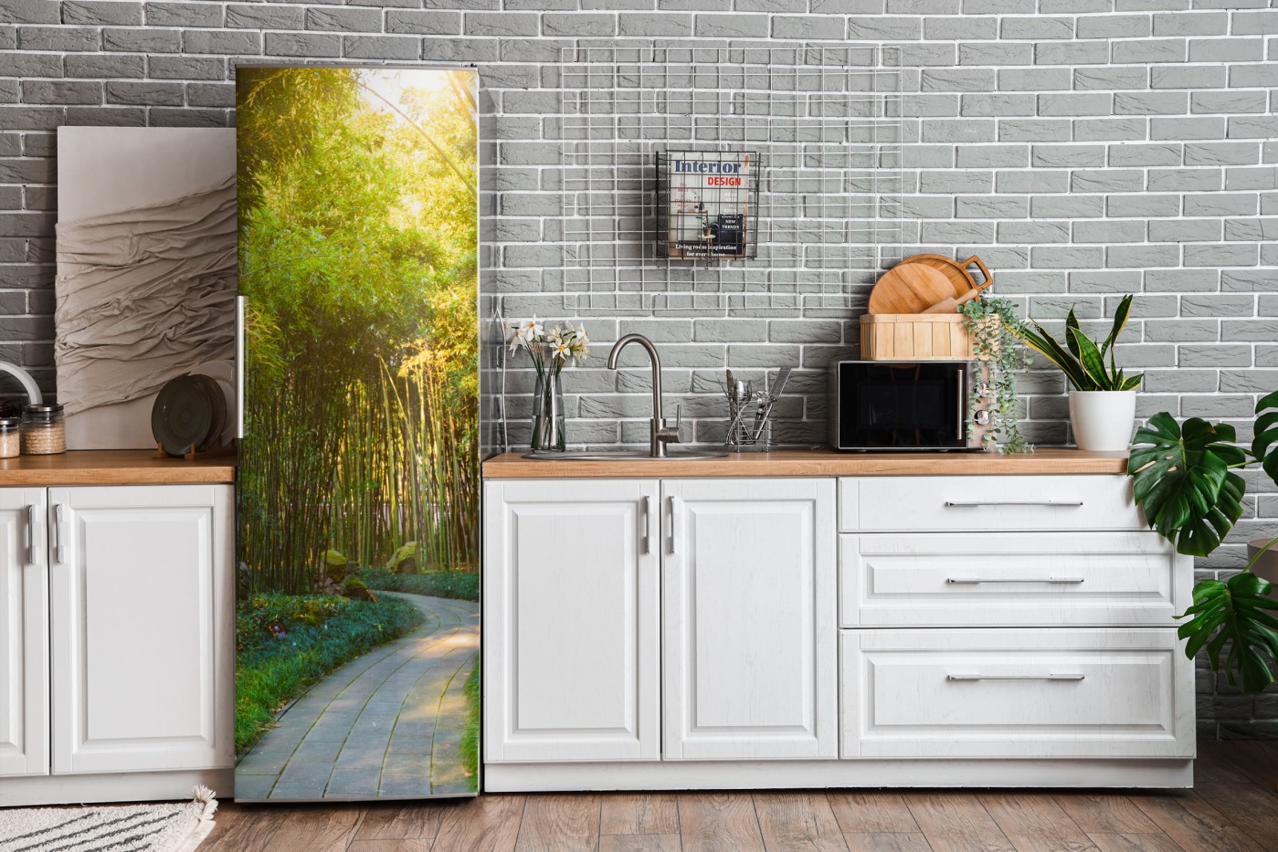Kühlschrankaufkleber Ruhiger bambuswald mit pfad