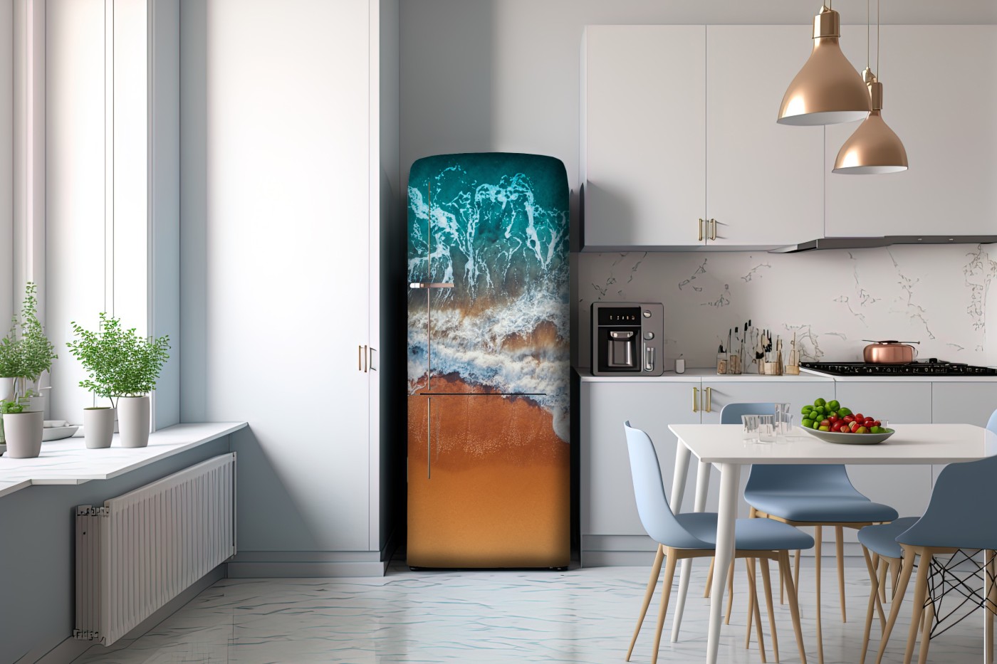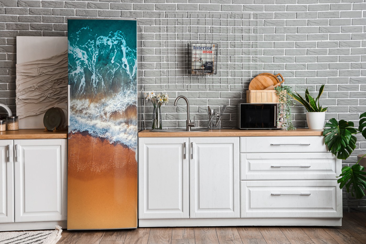 Kühlschrankaufkleber Luftaufnahme türkisfarbener wellen an einem sandstrand