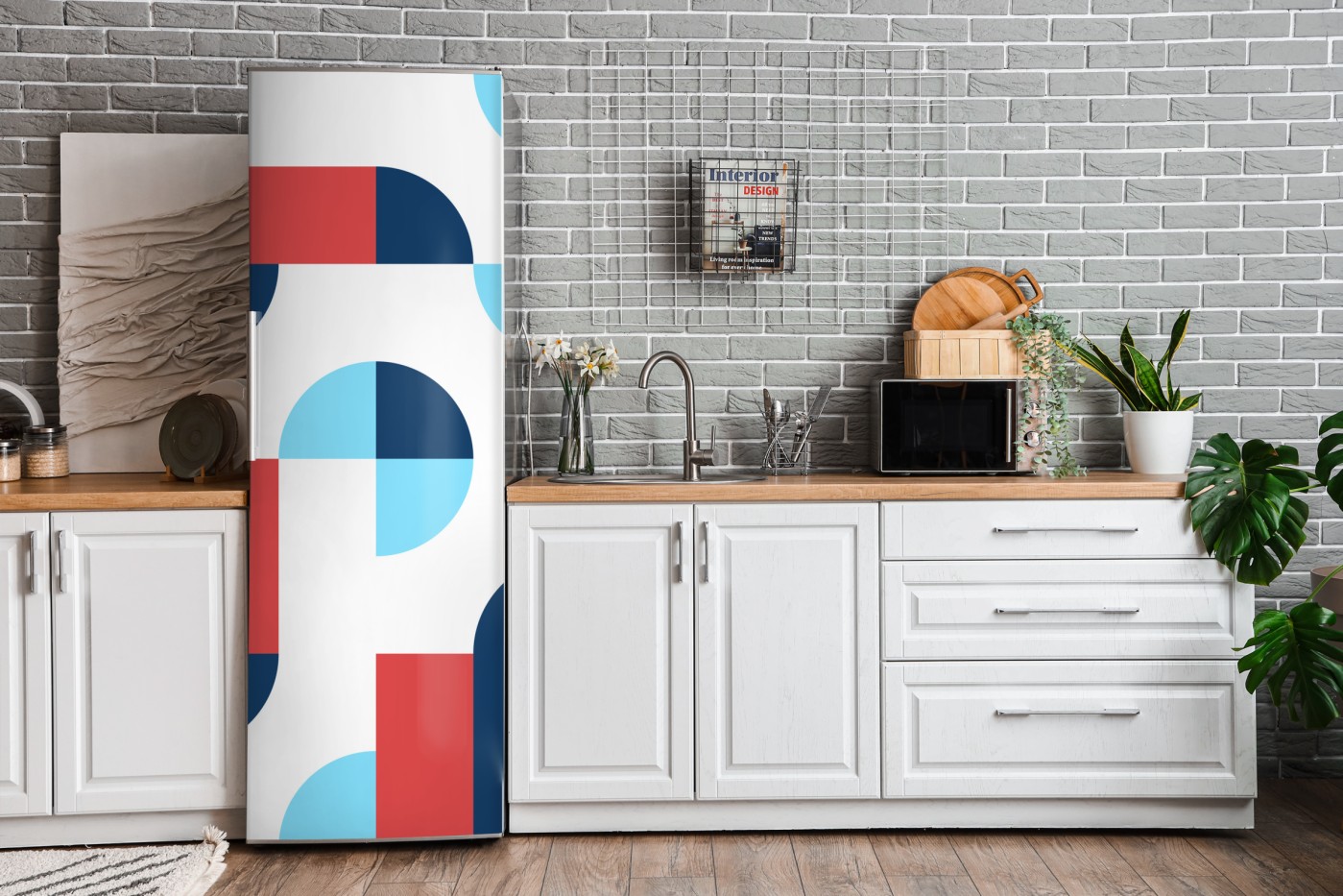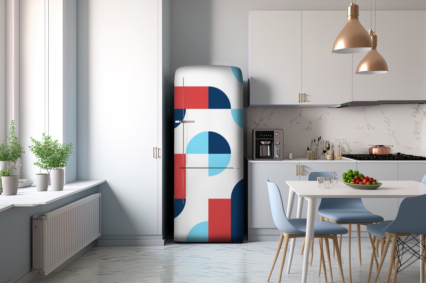 Kühlschrankaufkleber Mutiges geometrisches muster in dunkelblau und koralle