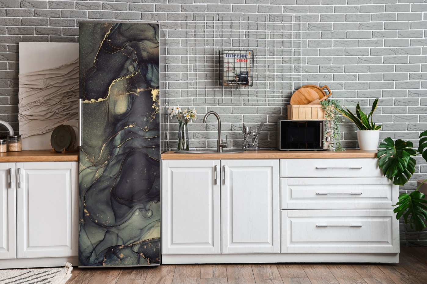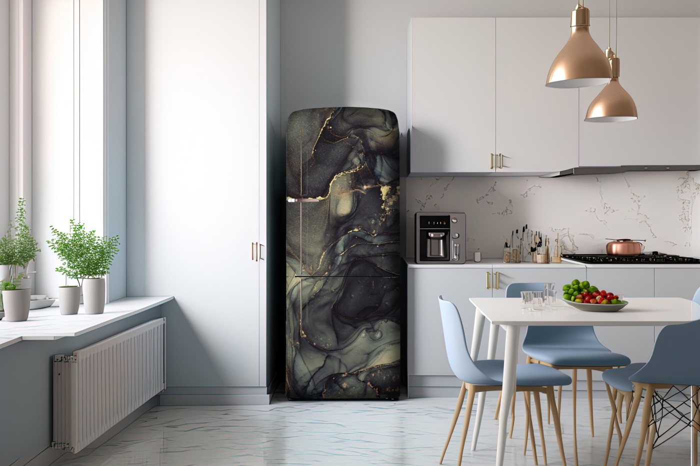 Kühlschrankaufkleber Luxuriöse abstrakte alkoholtinten-kunst mit goldenen adern