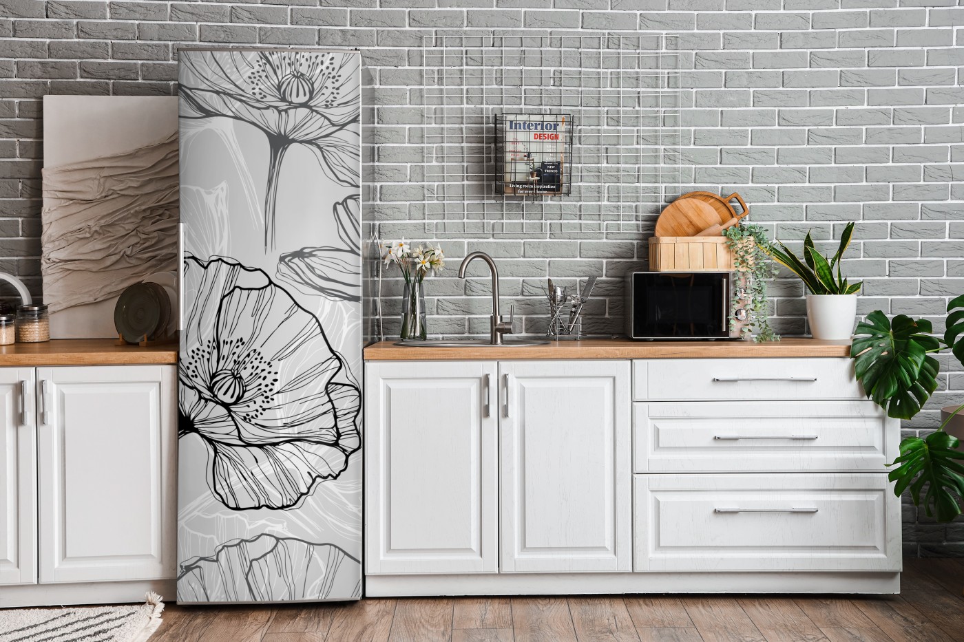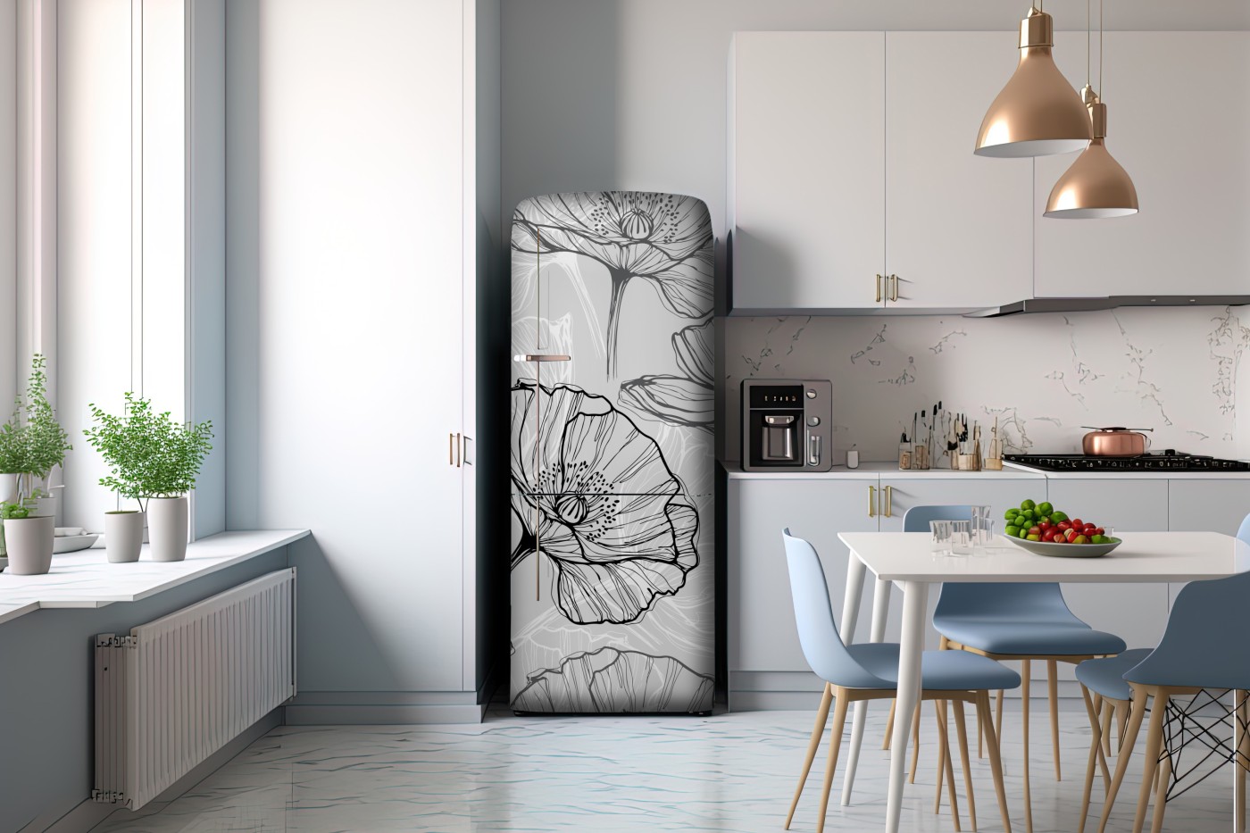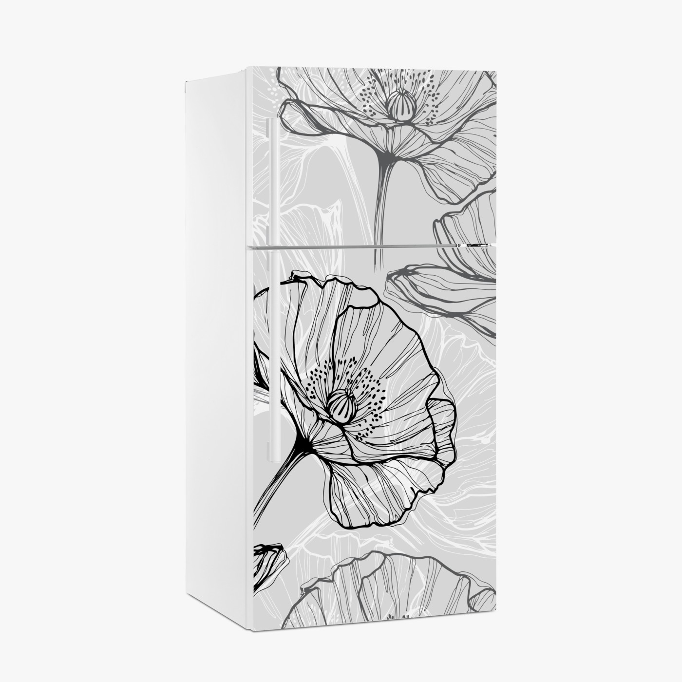 Kühlschrankaufkleber Zarter grauer mohn in linienzeichnung