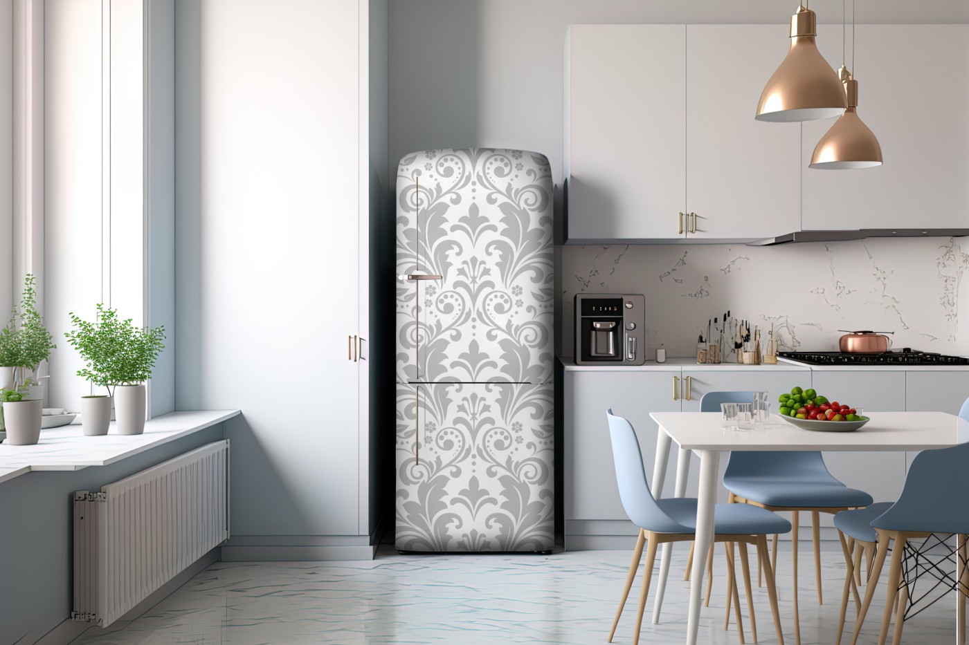 Kühlschrankaufkleber Elegantes graues damastmuster