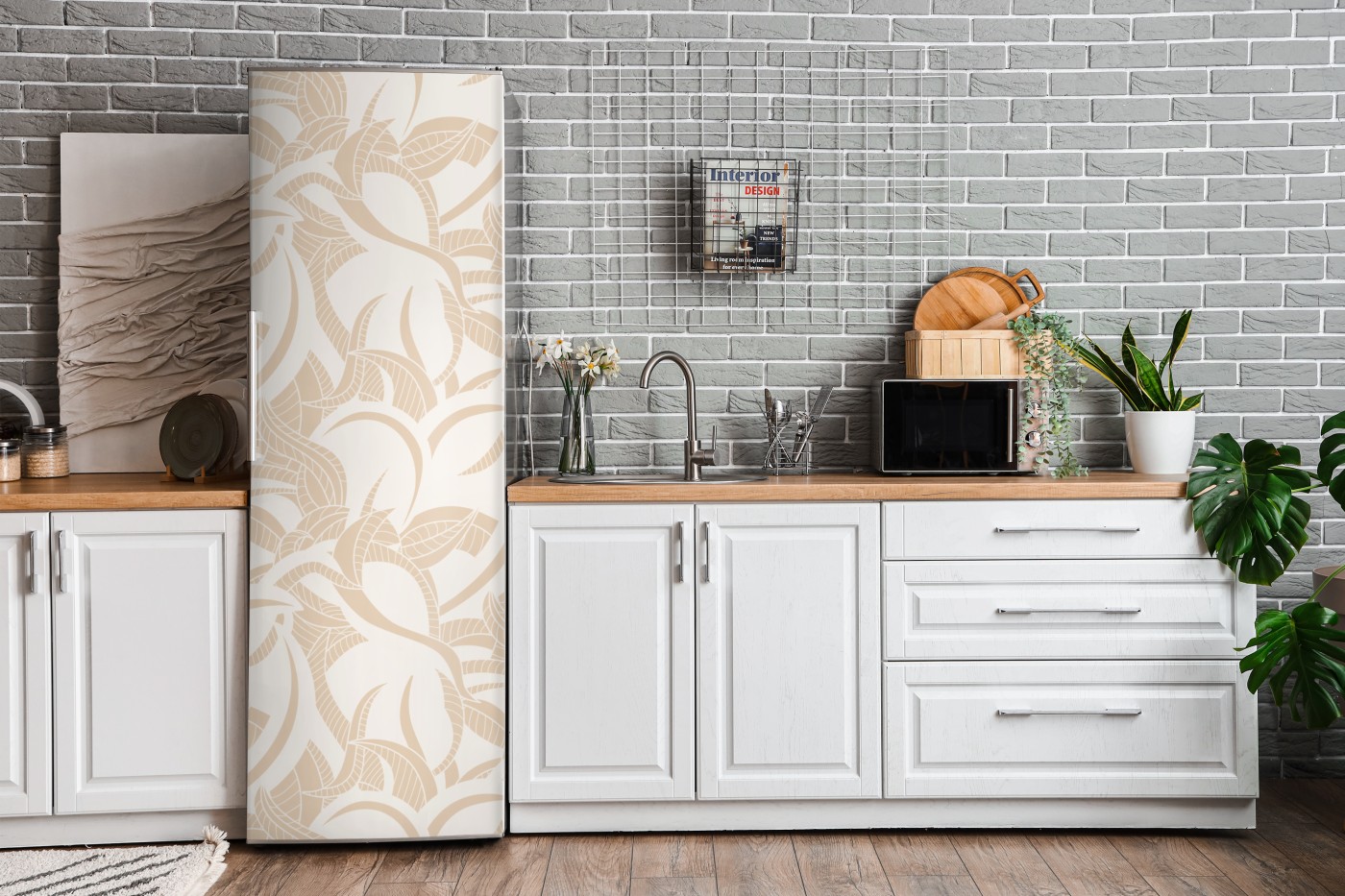 Kühlschrankaufkleber Beiges blattmuster im botanischen stil