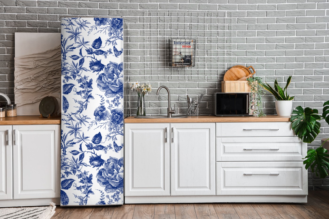 Kühlschrankaufkleber Blaues blumen toile-muster