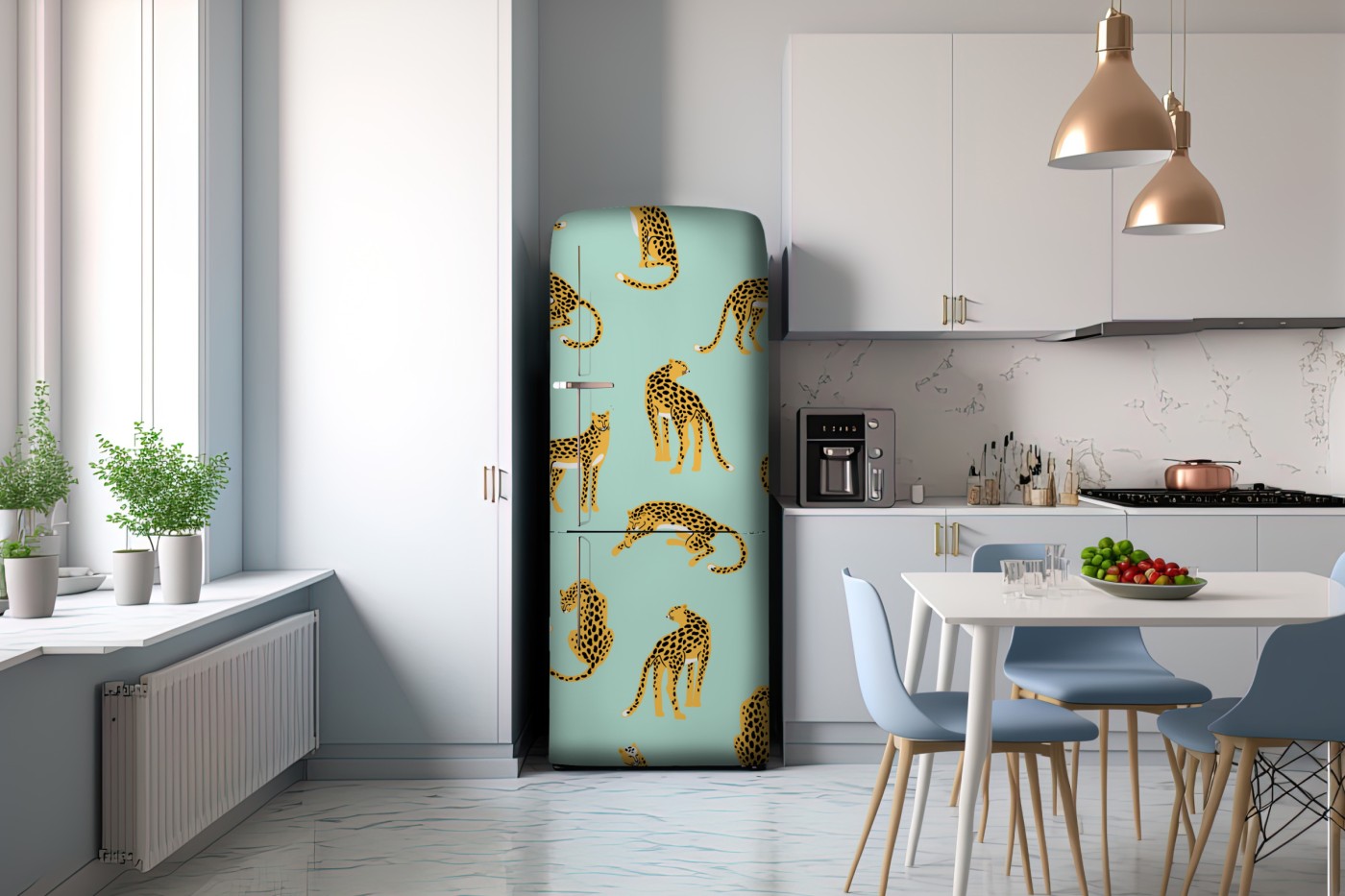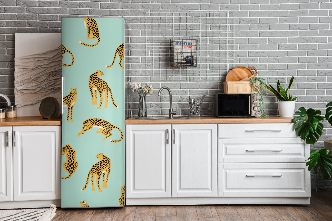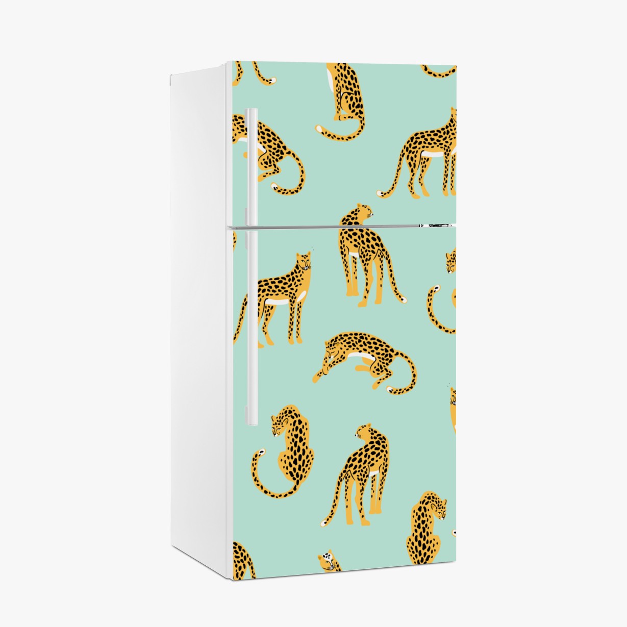 Kühlschrankaufkleber Verspieltes gepardenmuster auf türkisgrund