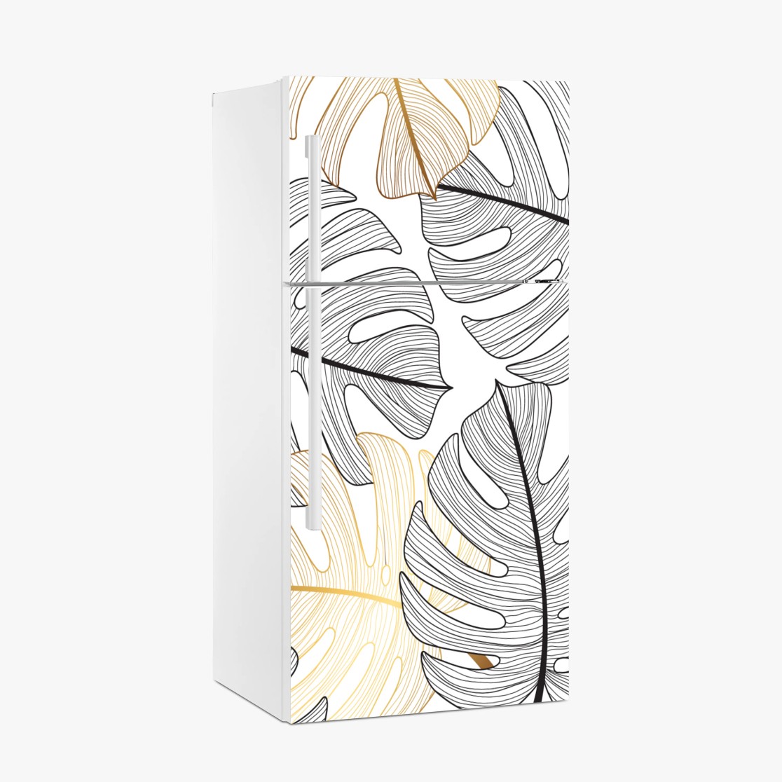 Kühlschrankaufkleber Monstera-blattmuster mit goldakzenten