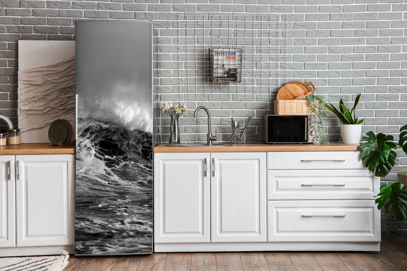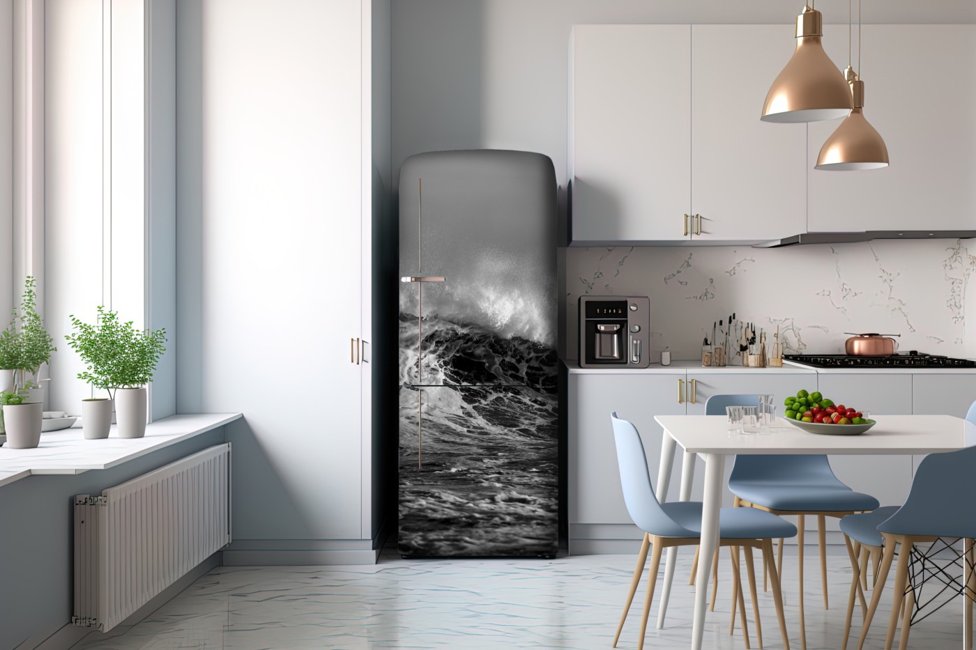 Kühlschrankaufkleber Dramatische schwarzweiß-welle des ozeans