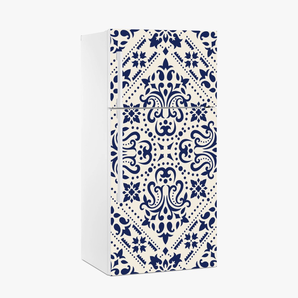 Kühlschrankaufkleber Marineblaues damast-fliesenmuster