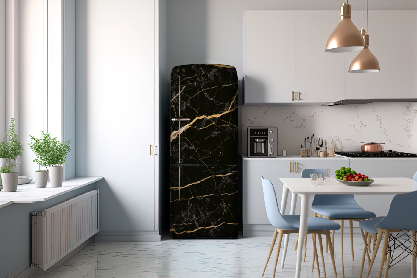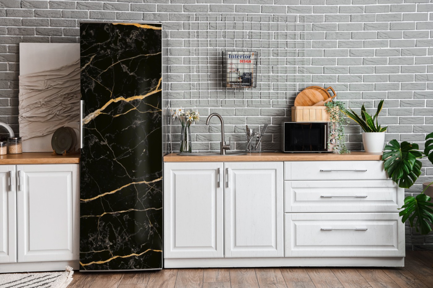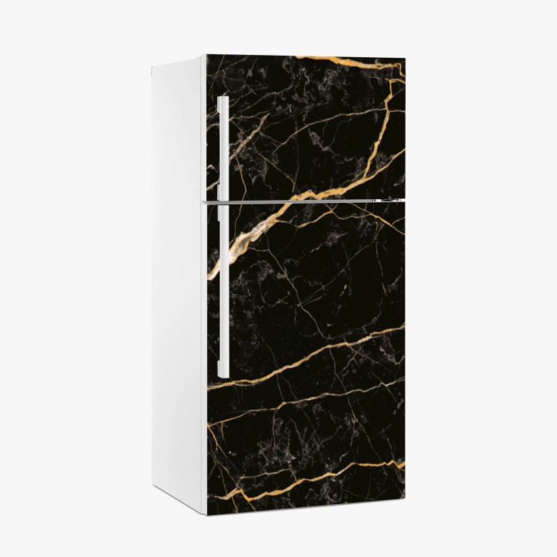 Kühlschrankaufkleber Schwarzer marmor mit goldenen adern