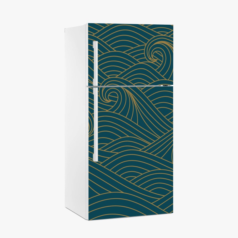 Kühlschrankaufkleber Türkiswellenmuster mit goldlinien
