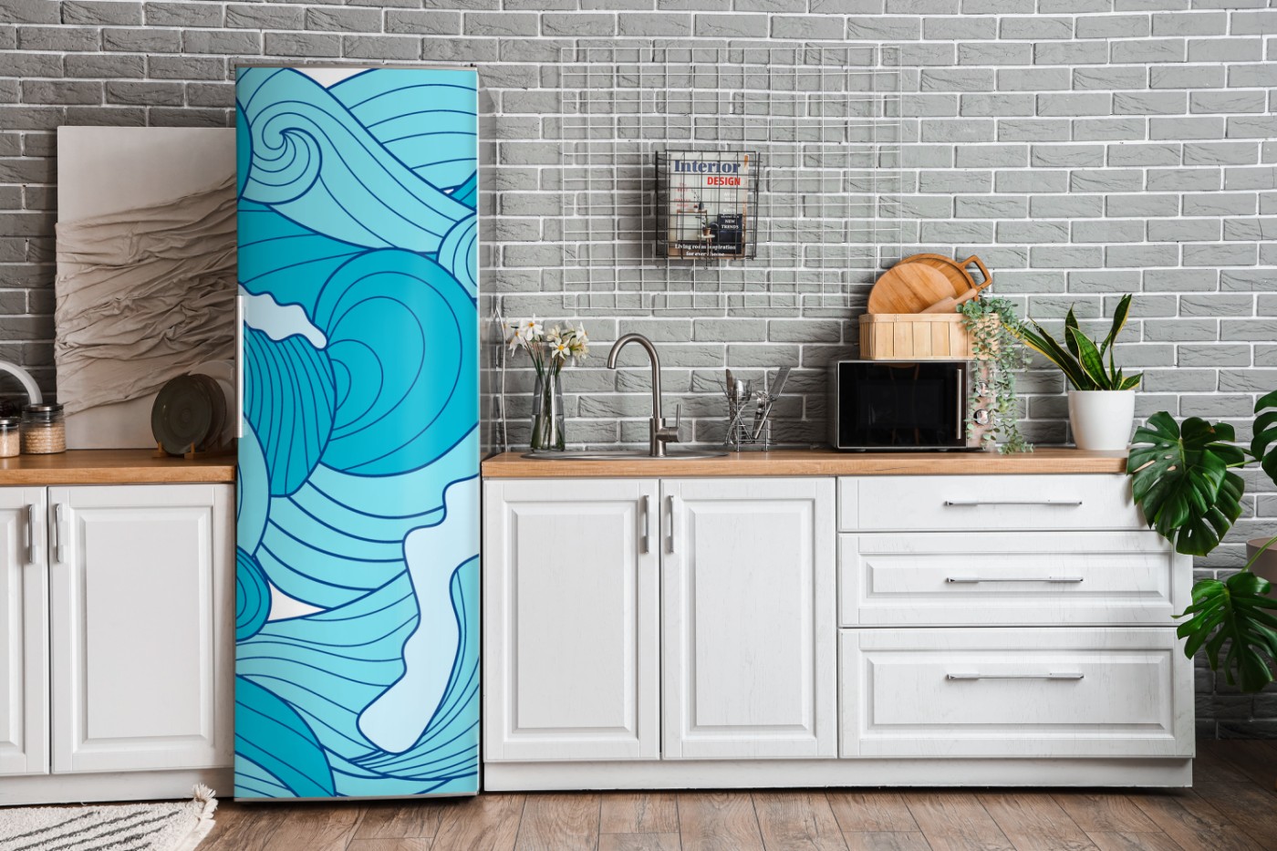 Kühlschrankaufkleber Blaue ozeanwellen illustration