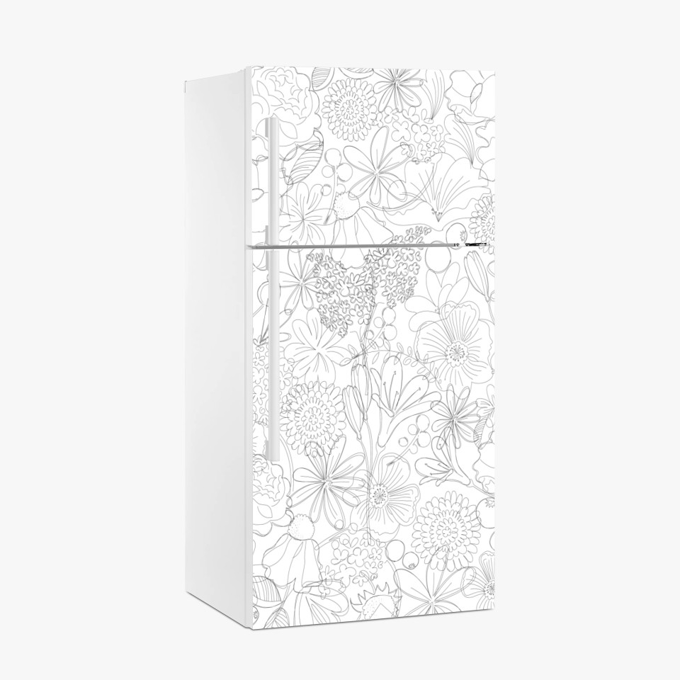 Kühlschrankaufkleber Zartes handgezeichnetes blumenlinienmuster