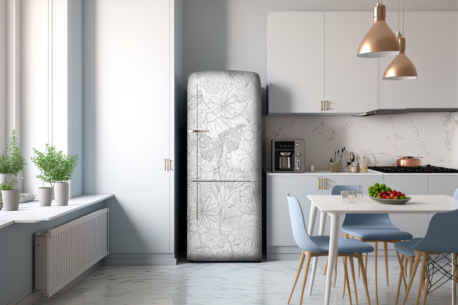 Kühlschrankaufkleber zartes handgezeichnetes blumenlinienmuster