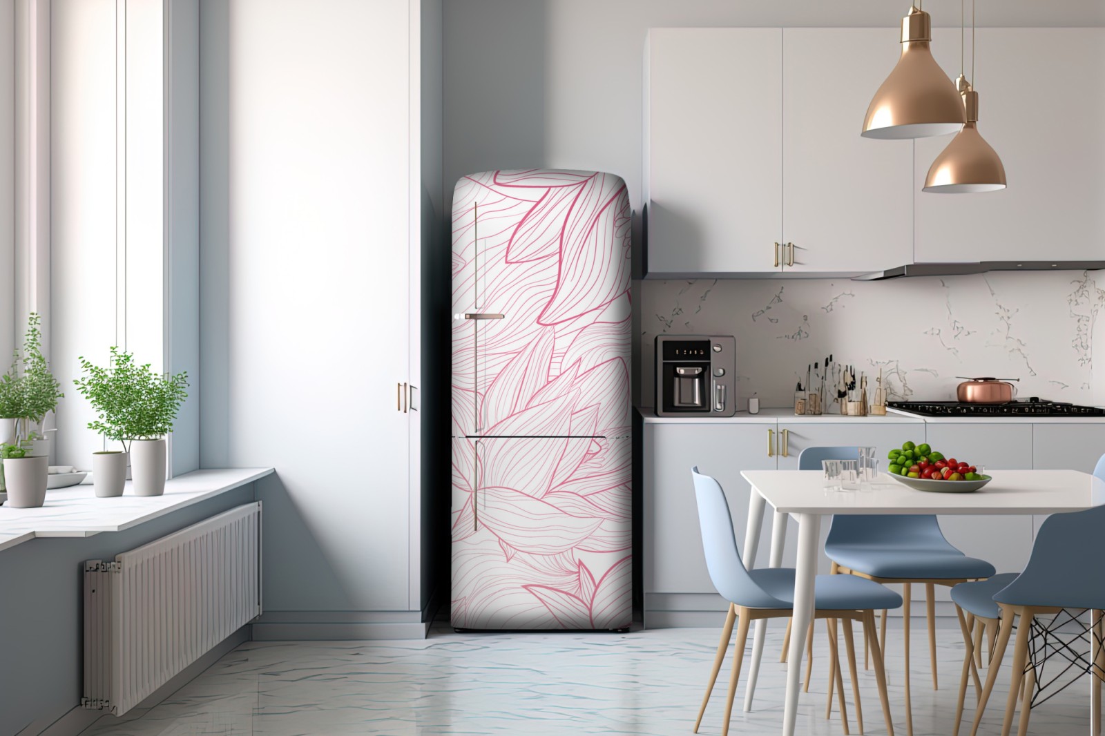 Kühlschrankaufkleber zartes rosa blumenlinienmuster
