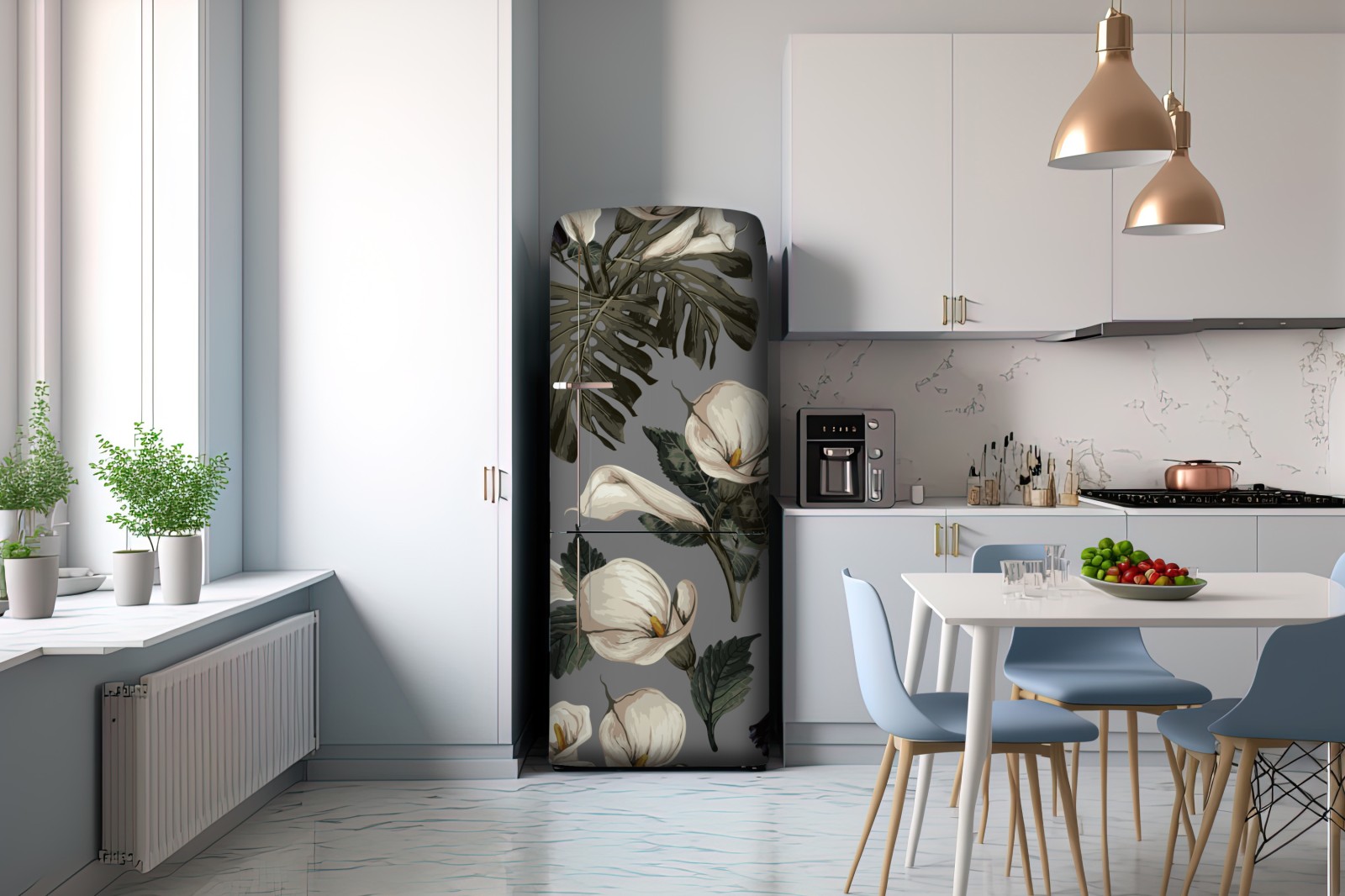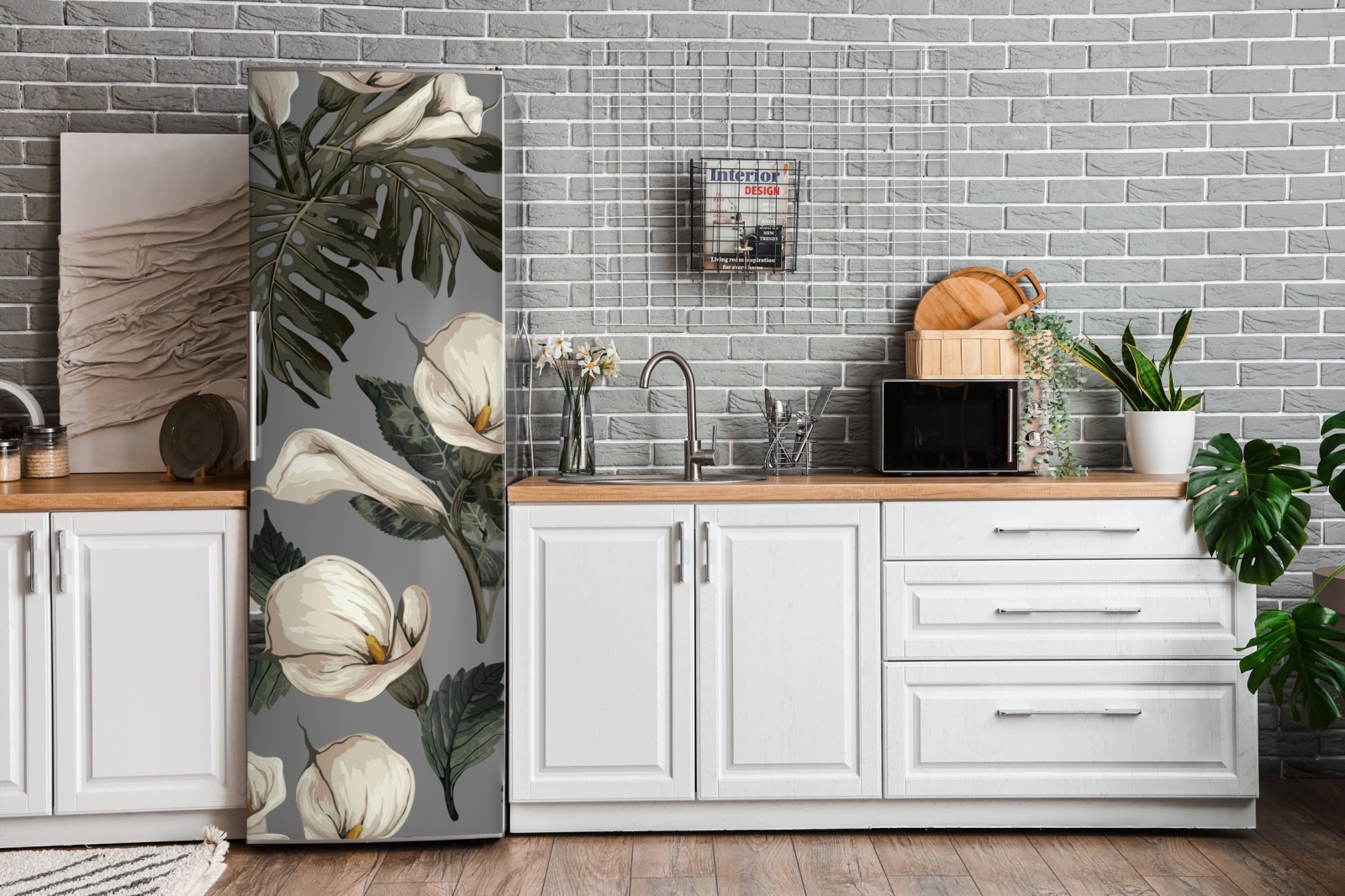 Kühlschrankaufkleber vintage calla blumenmuster auf grauem hintergrund