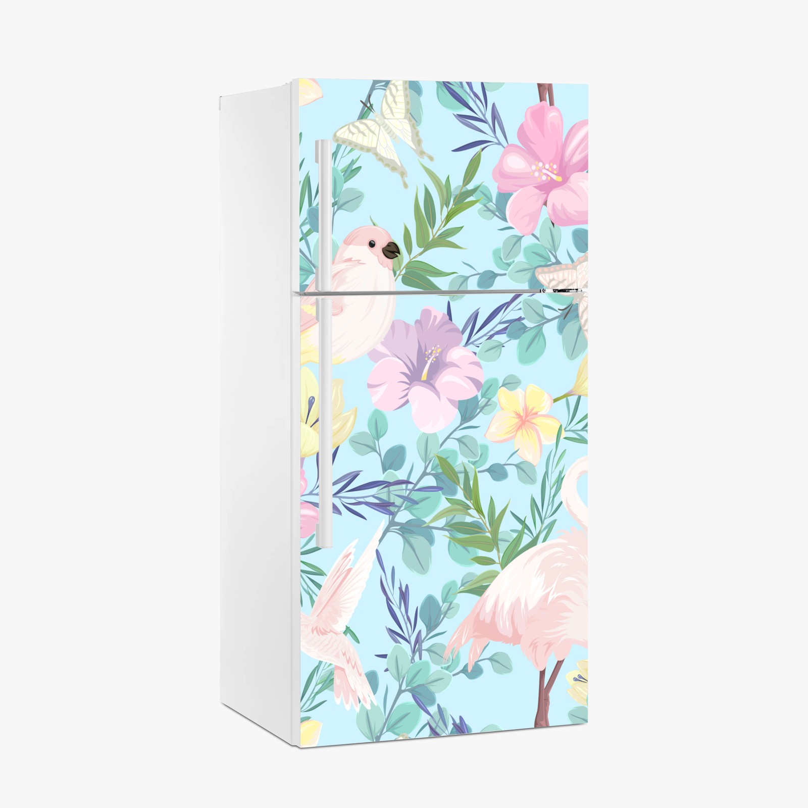 Kühlschrankaufkleber Pastell tropisches vögel- und blumenmuster