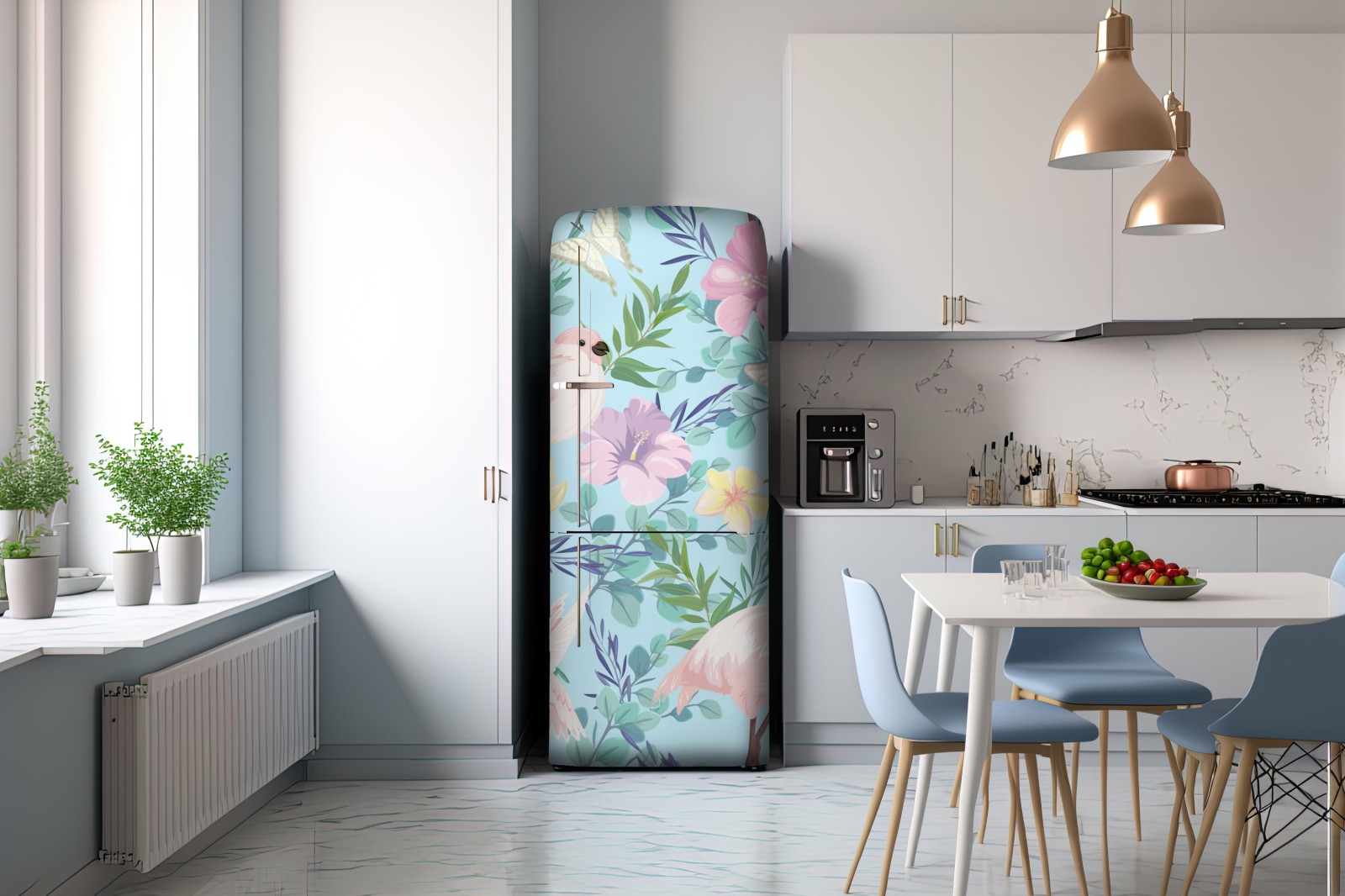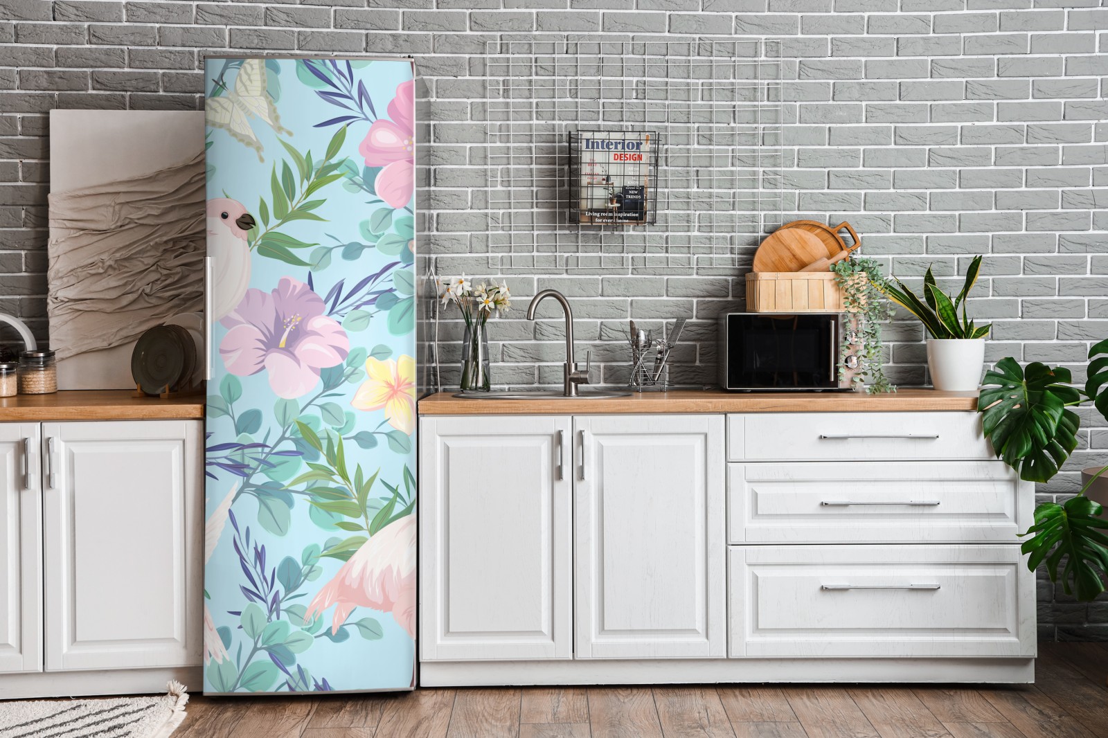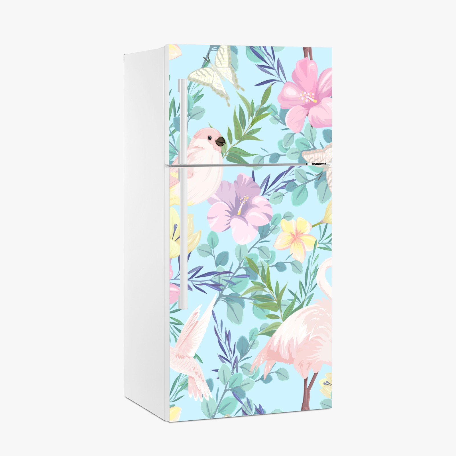 Kühlschrankaufkleber pastell tropisches vögel- und blumenmuster