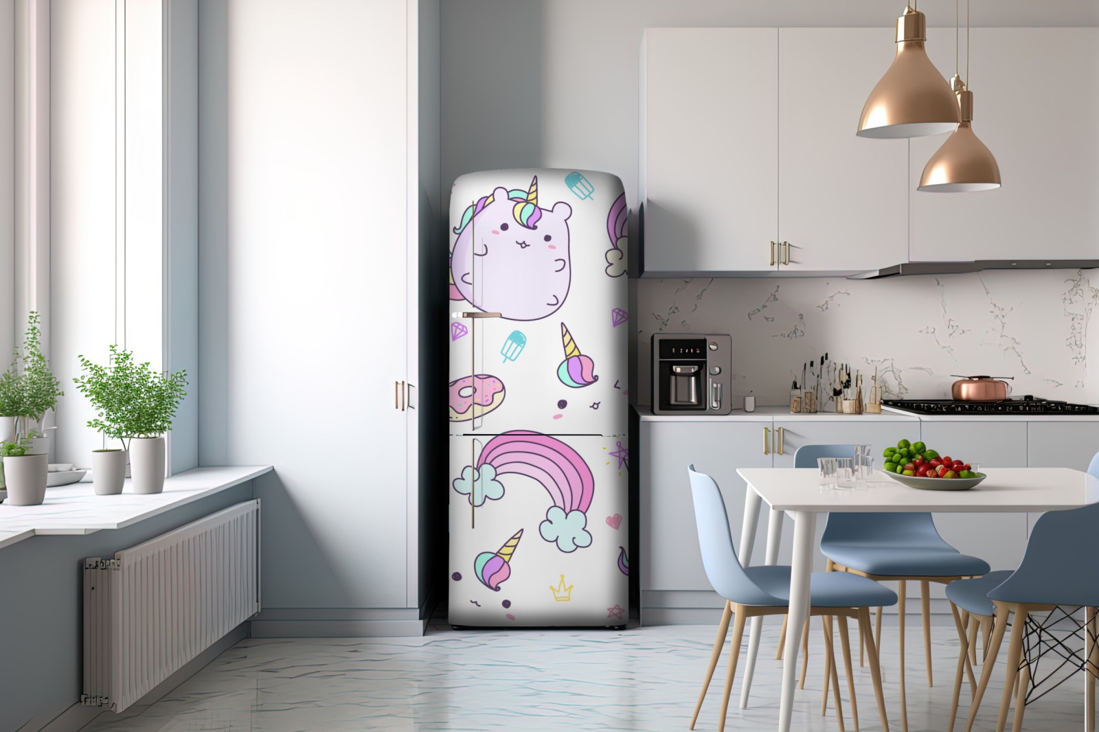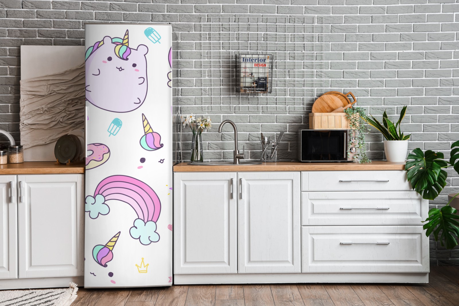 Kühlschrankaufkleber verspieltes pastell-einhorn-katzenmuster