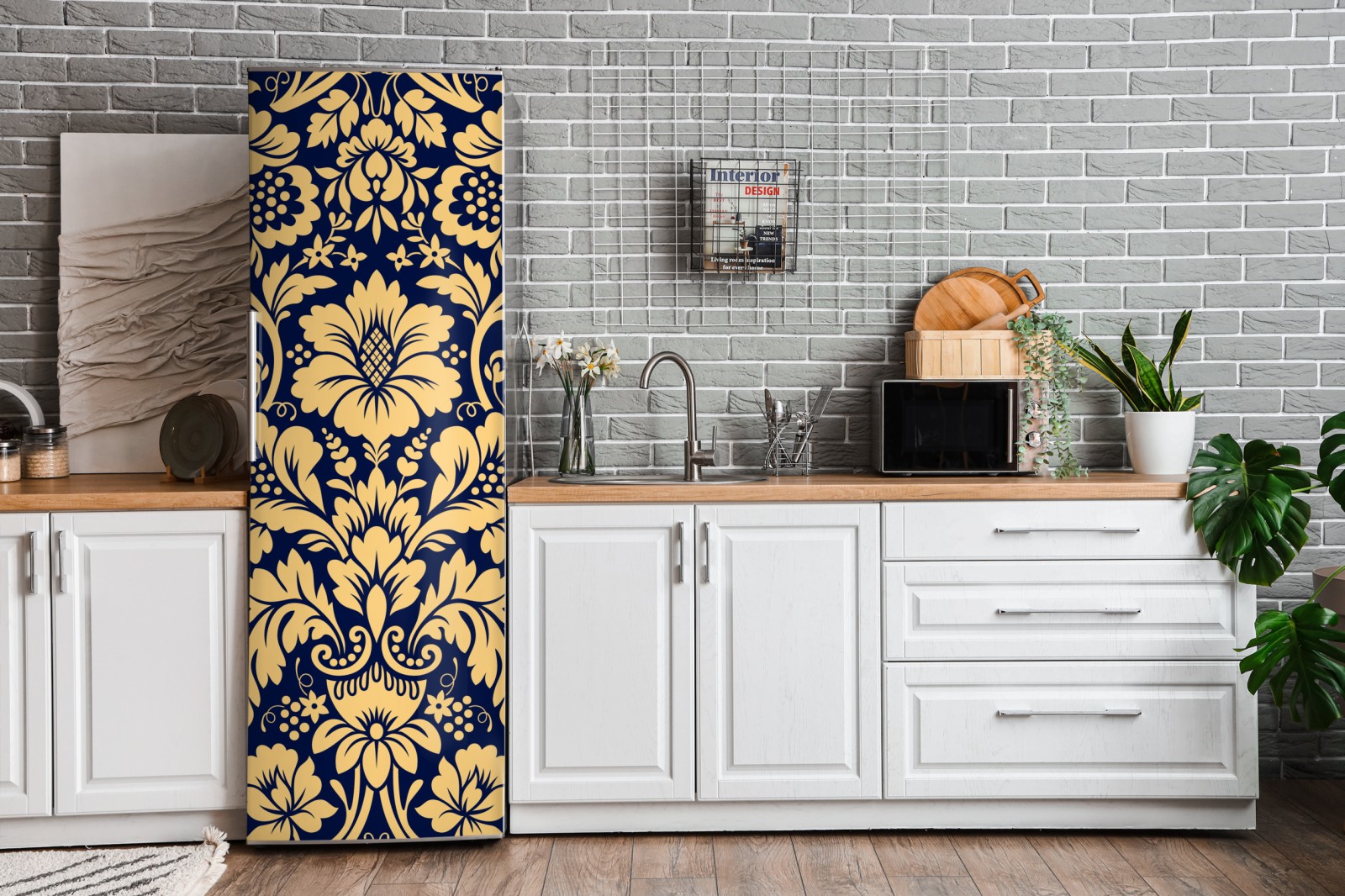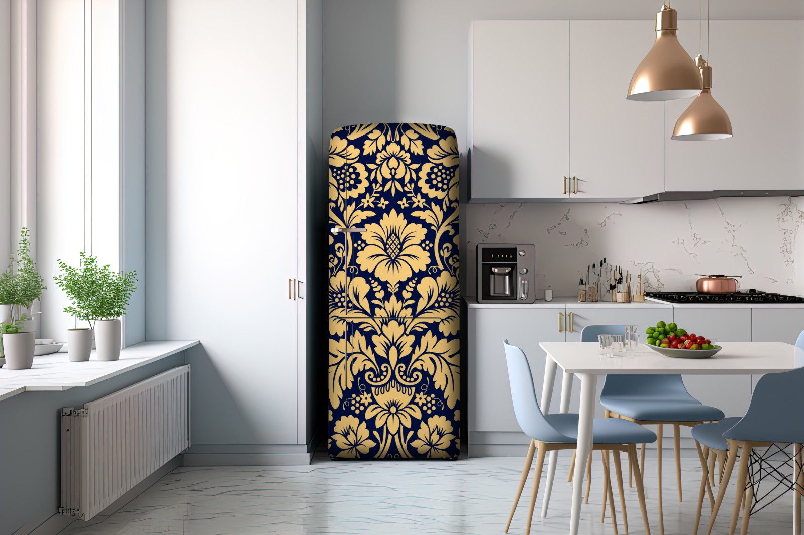 Kühlschrankaufkleber dunkelblau-beiges damastmuster