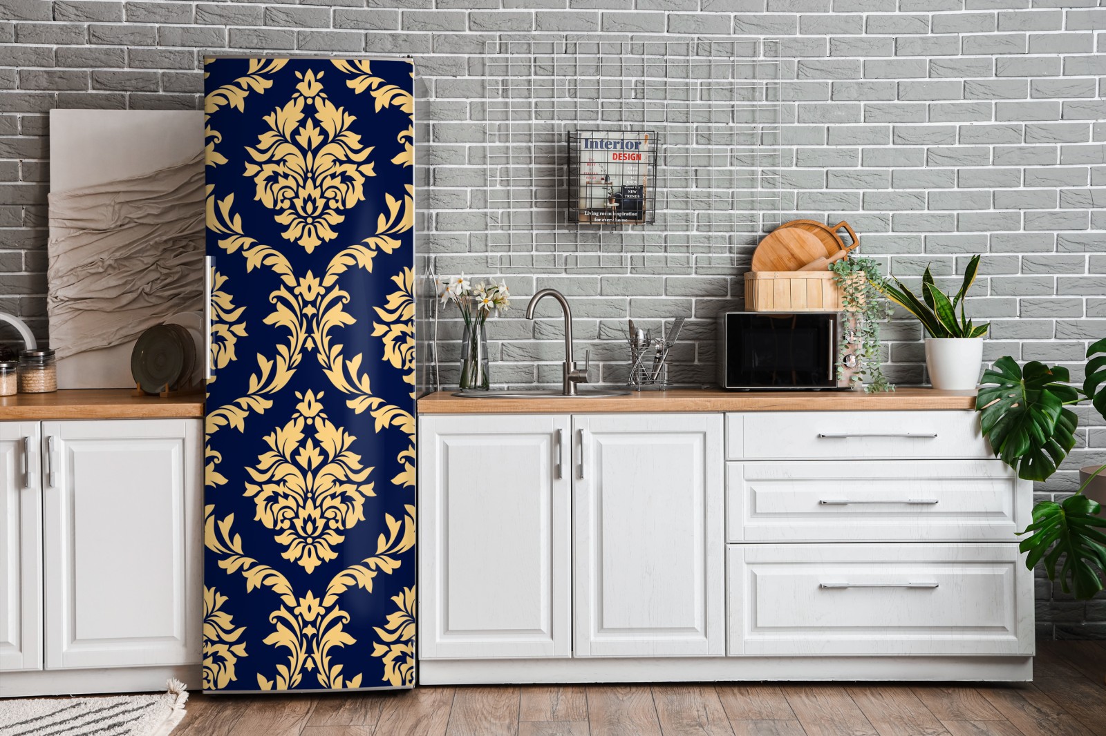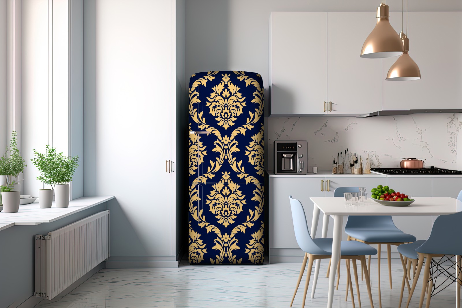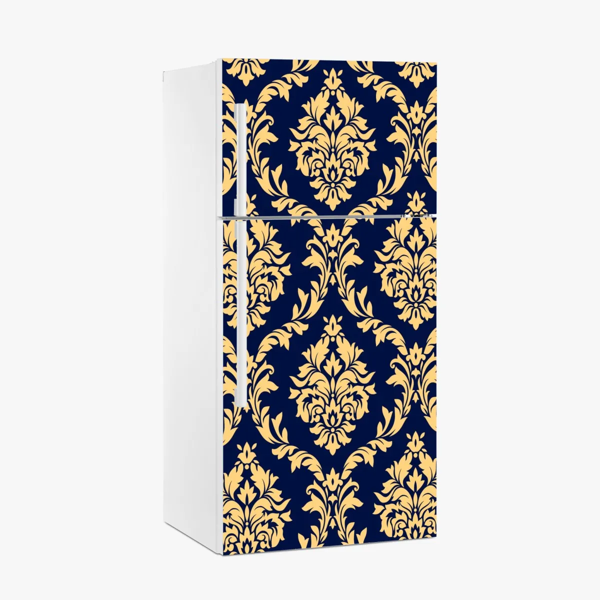 Kühlschrankaufkleber elegantes goldenes damastmuster auf tiefblauem hintergrund