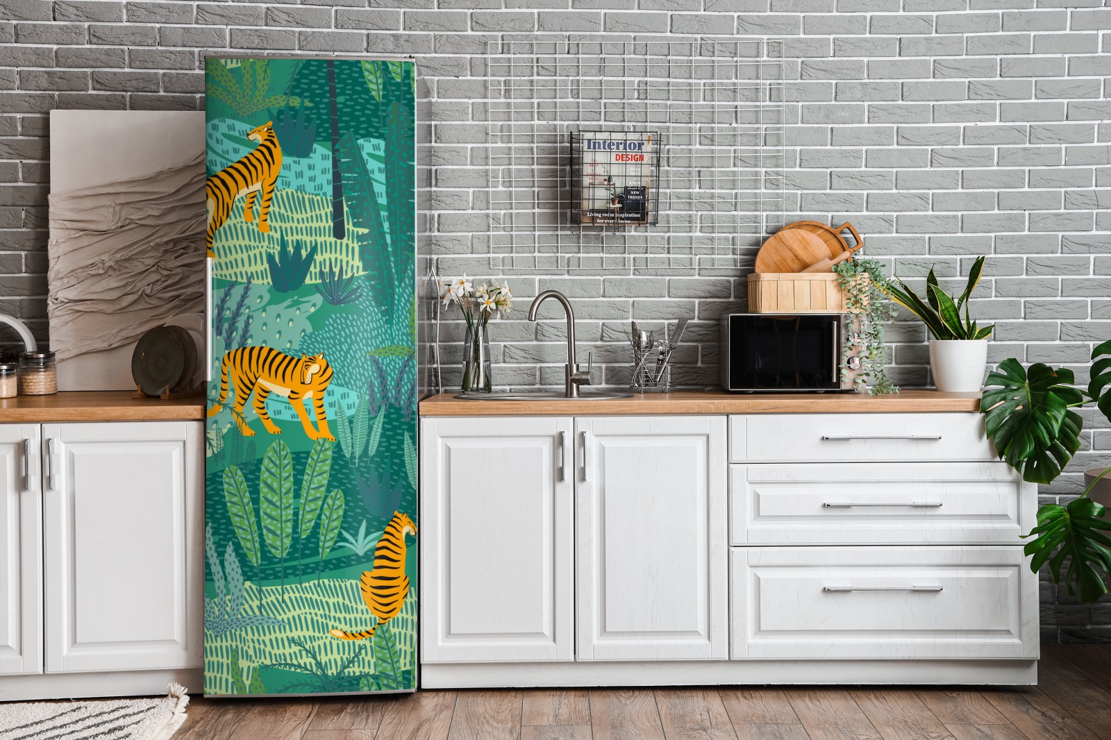 Kühlschrankaufkleber tropischer dschungel mit tigern