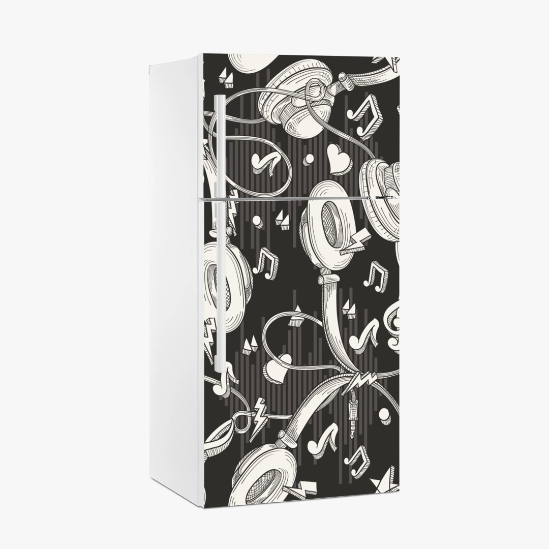 Kühlschrankaufkleber Monochromatisches muster mit kopfhörern und noten