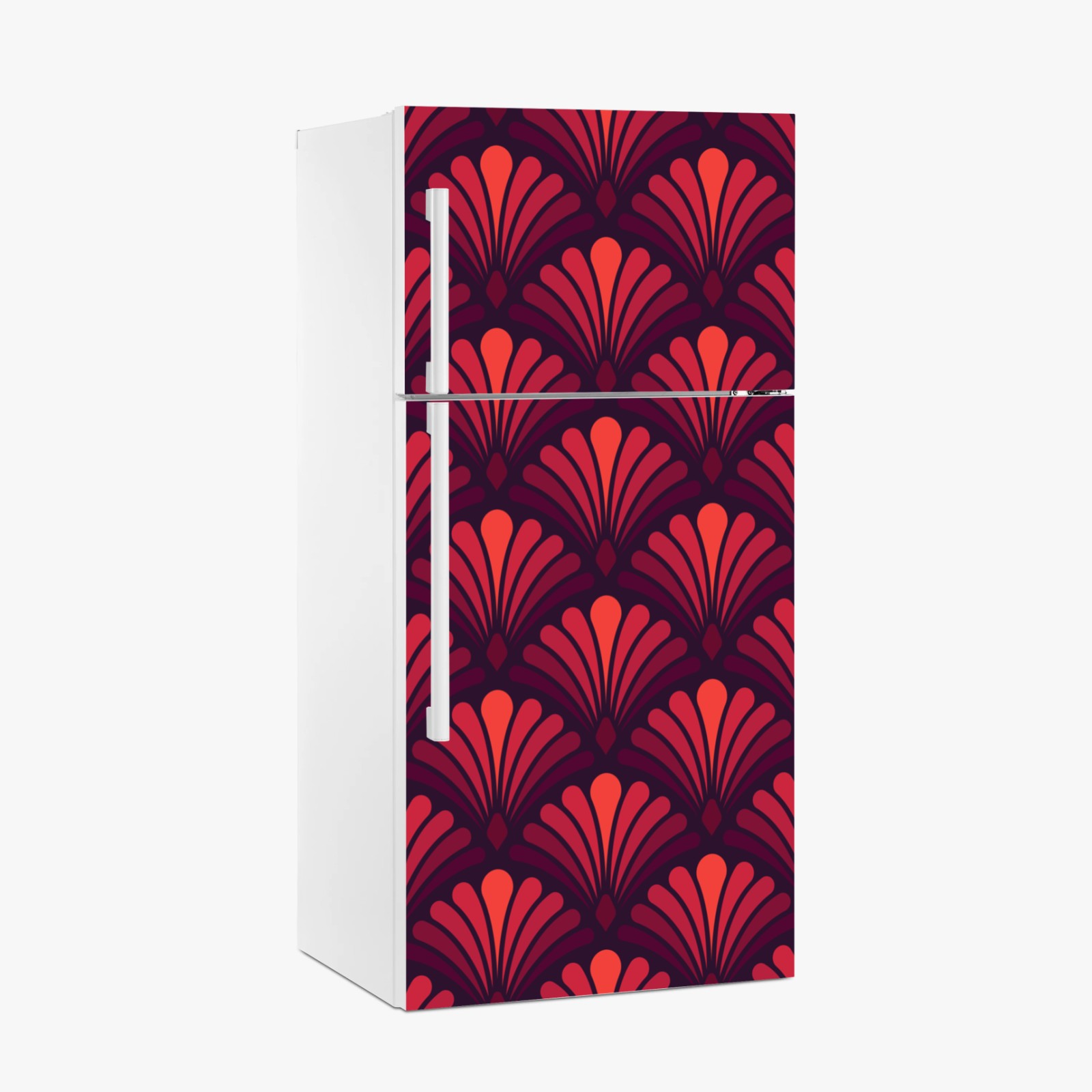 Kühlschrankaufkleber Geometrisches art-déco fächermuster in warmen rot- und violetttönen