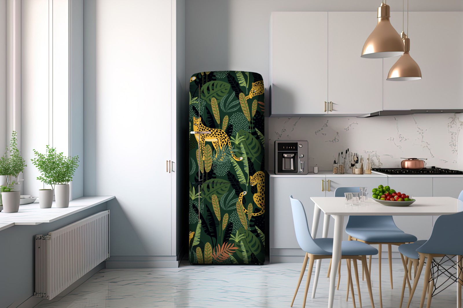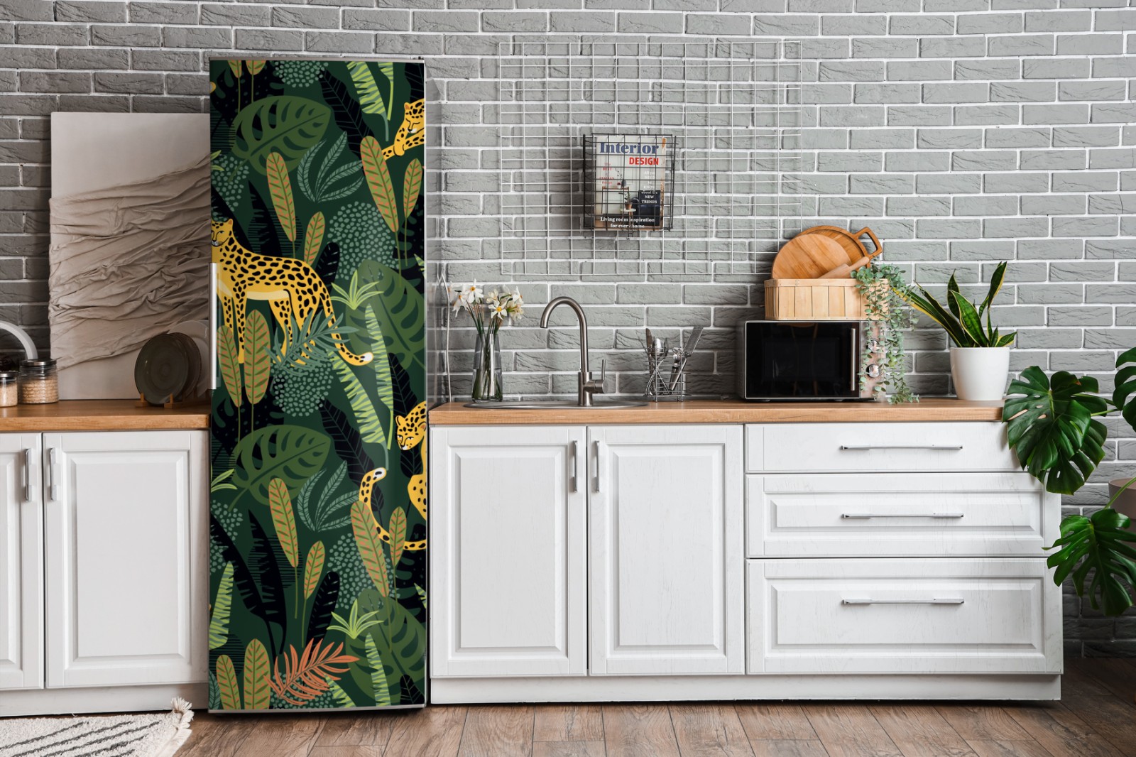 lebendiges tropisches muster mit leoparden und üppigem laub bringt exotische energie und verspielten charme in jeden raum.