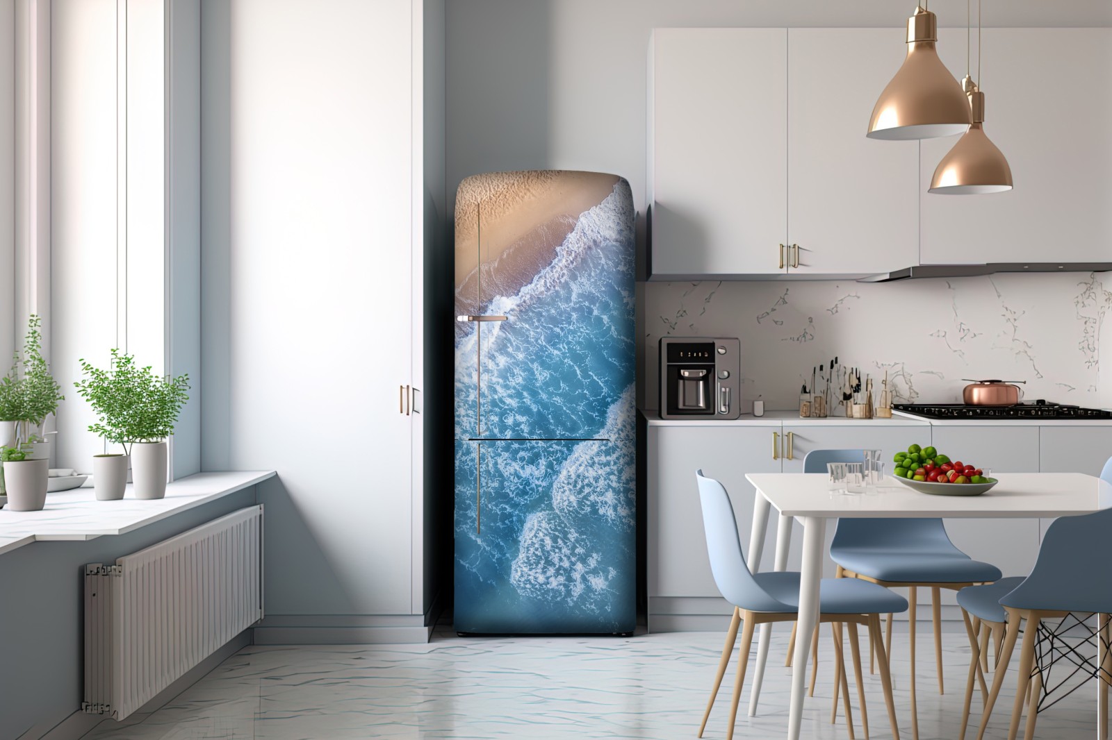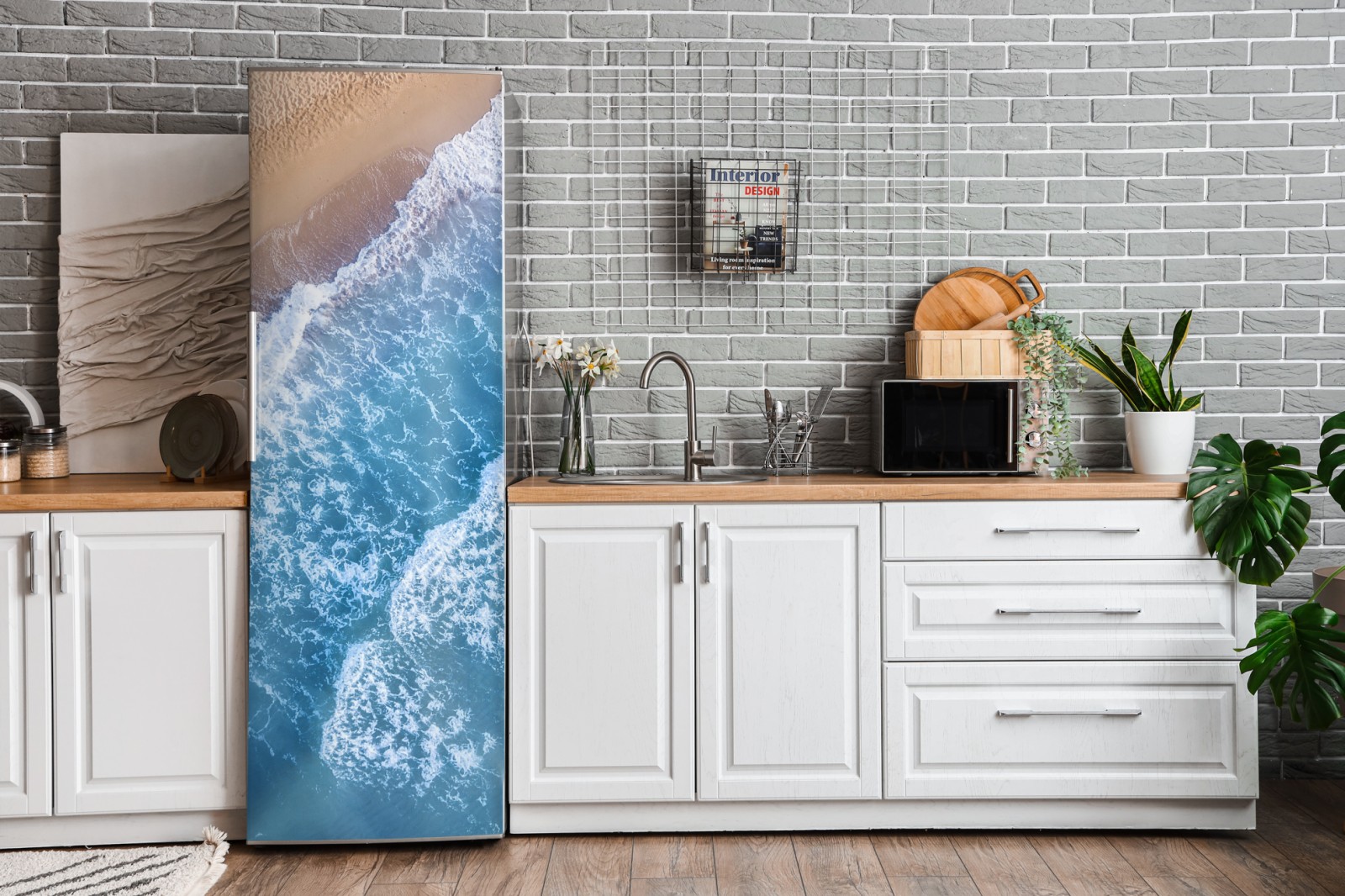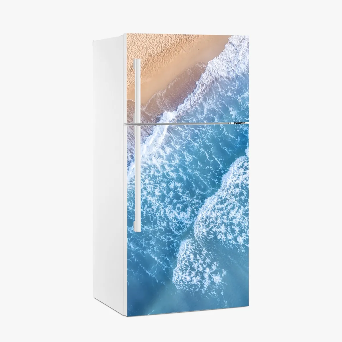 Kühlschrankaufkleber luftaufnahme türkiser wellen an sandigem strand