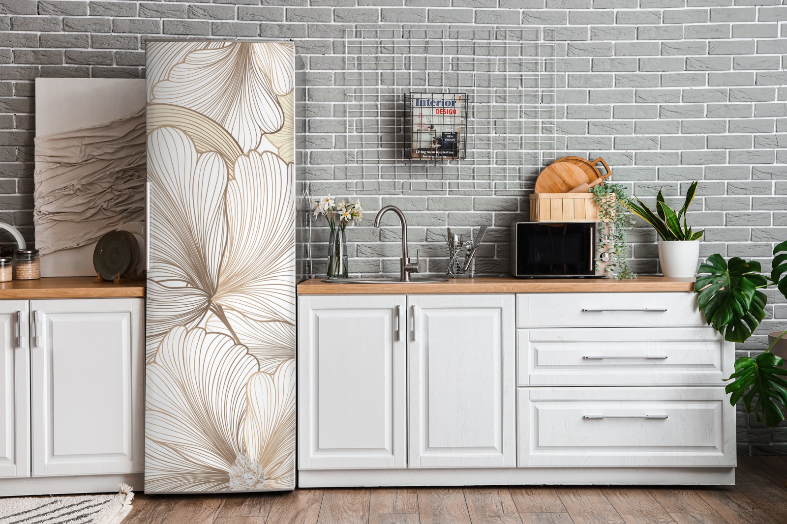 Kühlschrankaufkleber zarte beige blumenillustration