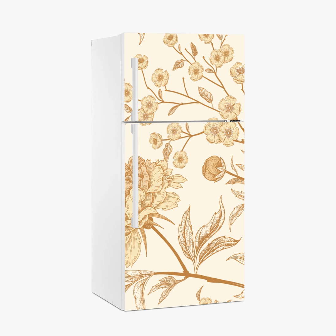 Kühlschrankaufkleber Vintage beiges blumenmuster mit pfingstrosen