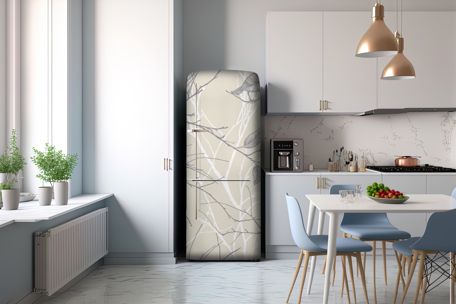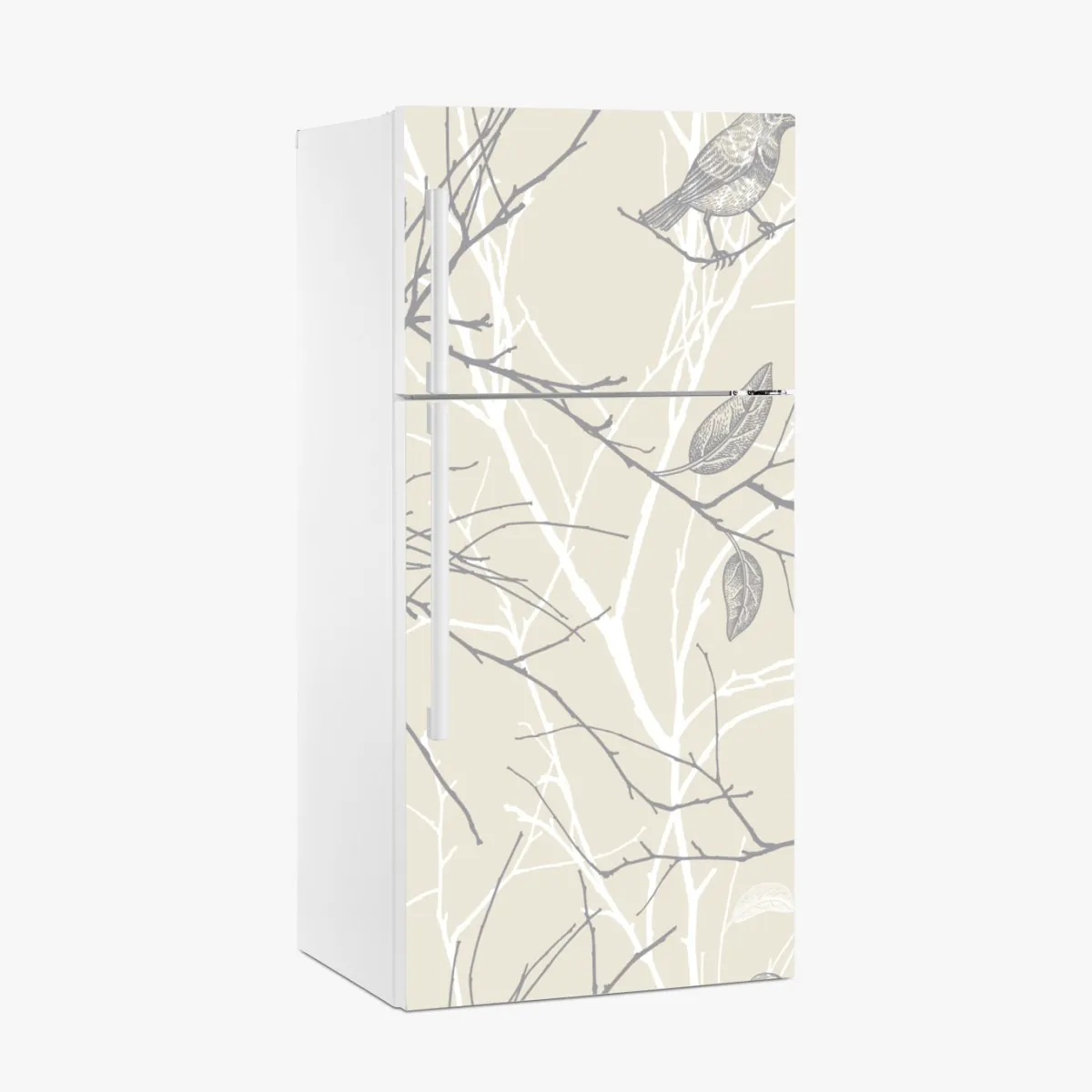 Kühlschrankaufkleber zartes beiges muster mit vögeln und ästen