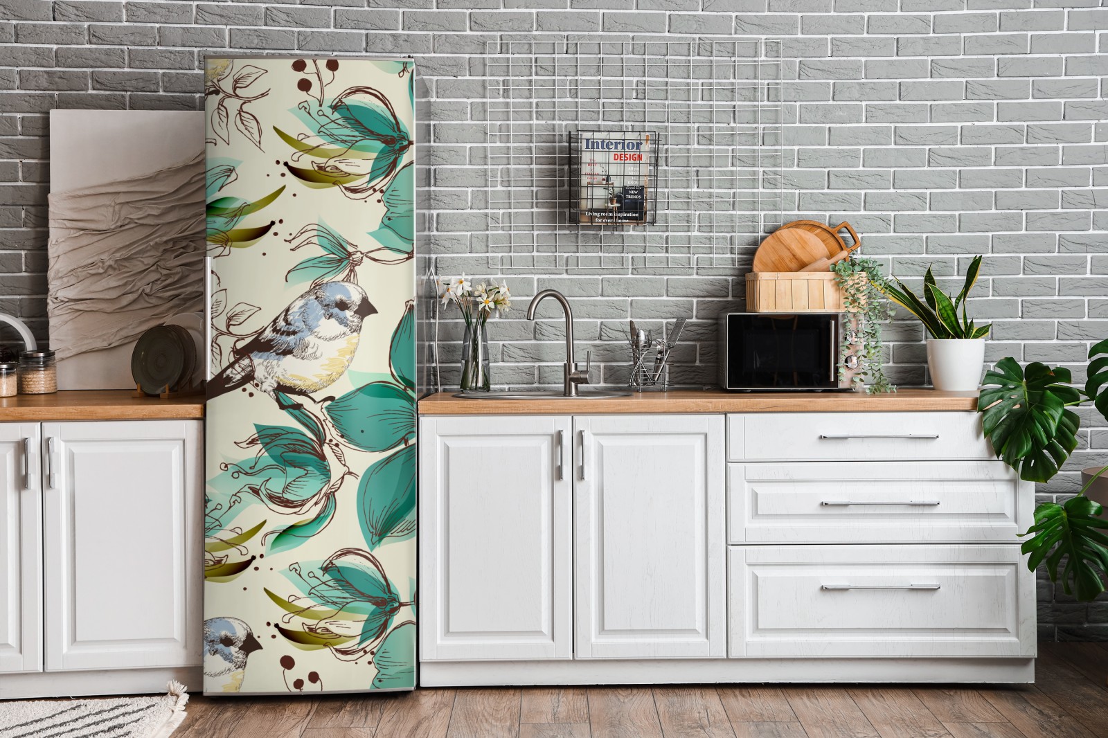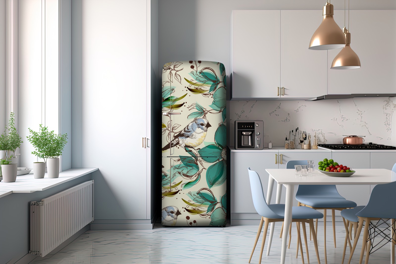 Kühlschrankaufkleber retro türkis blumen- und vogelmuster