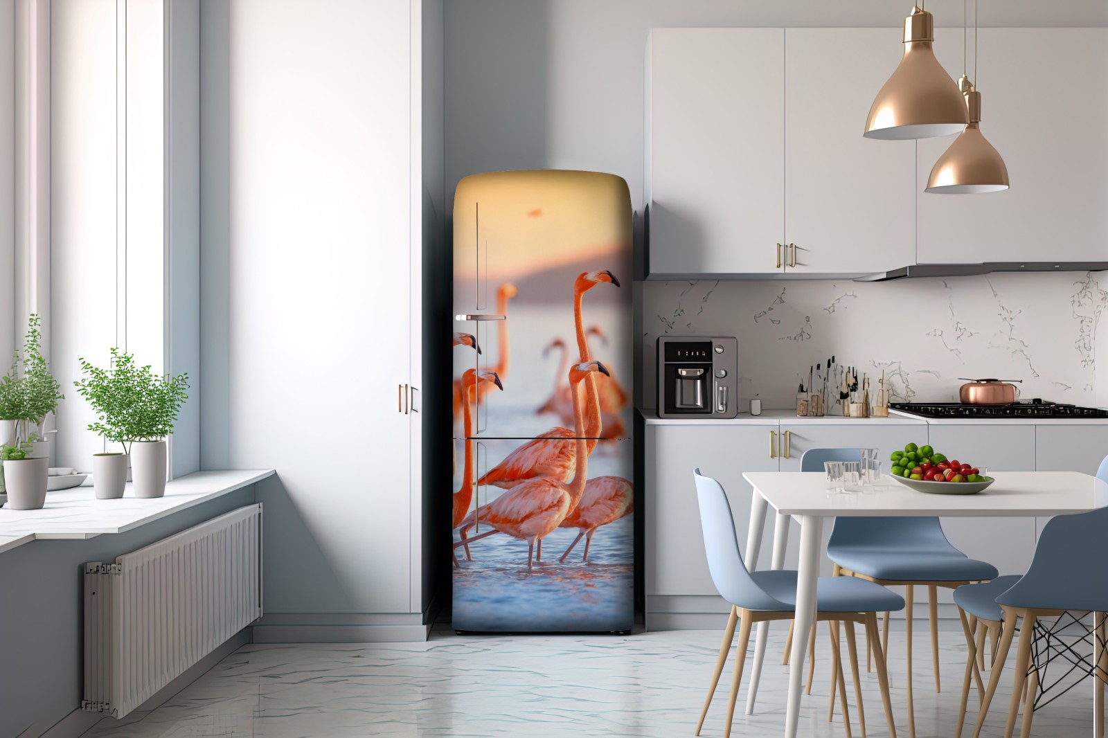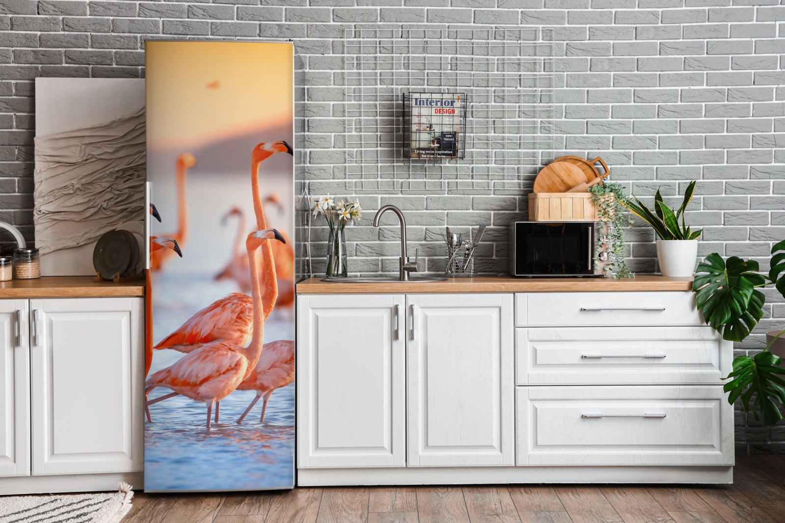 Kühlschrankaufkleber rosa flamingos bei sonnenuntergang