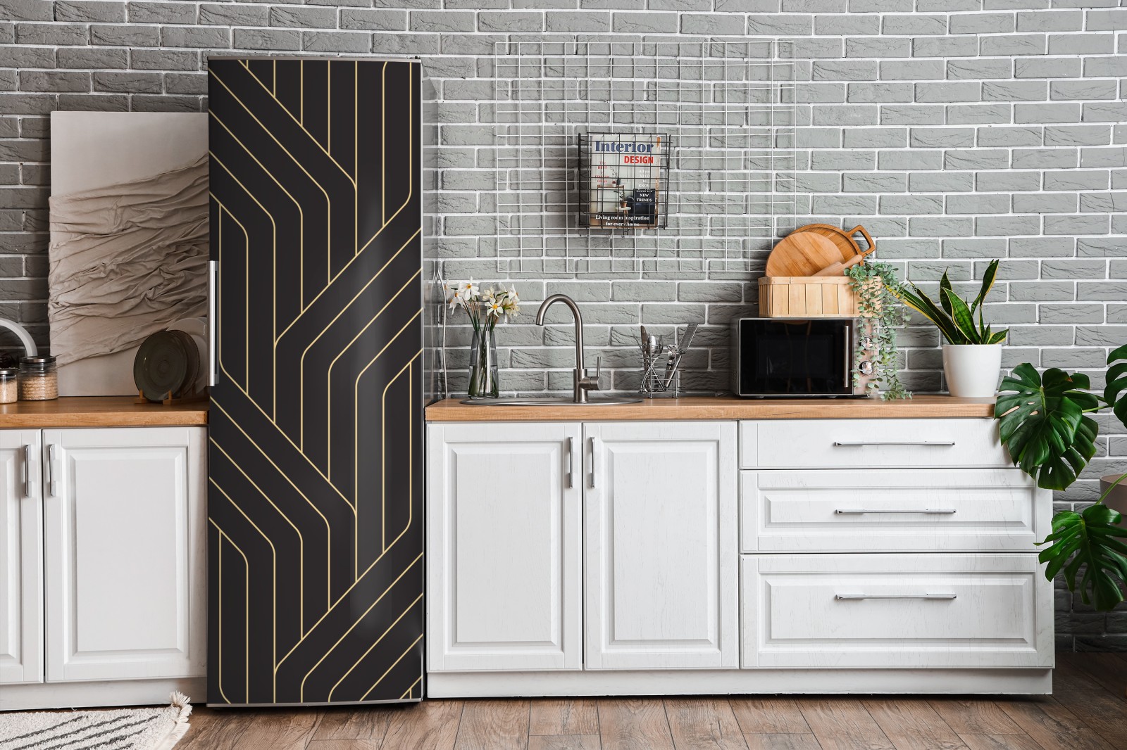 Kühlschrankaufkleber geometrisches art deco muster in schwarz und gold