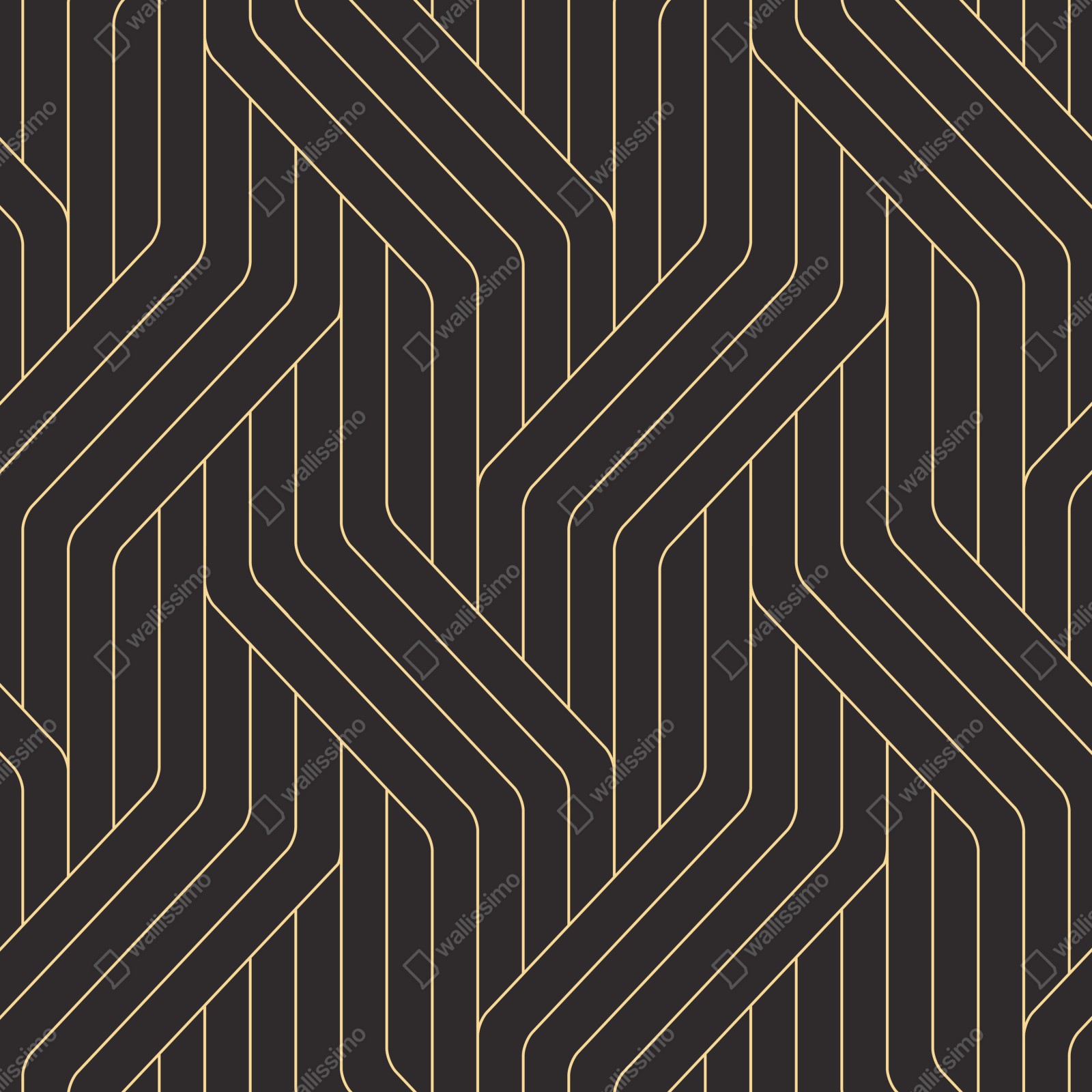 Elegantes geometrisches Art-Deco-Muster in Schwarz und Gold verleiht jedem Raum eine moderne und luxuriöse Atmosphäre.