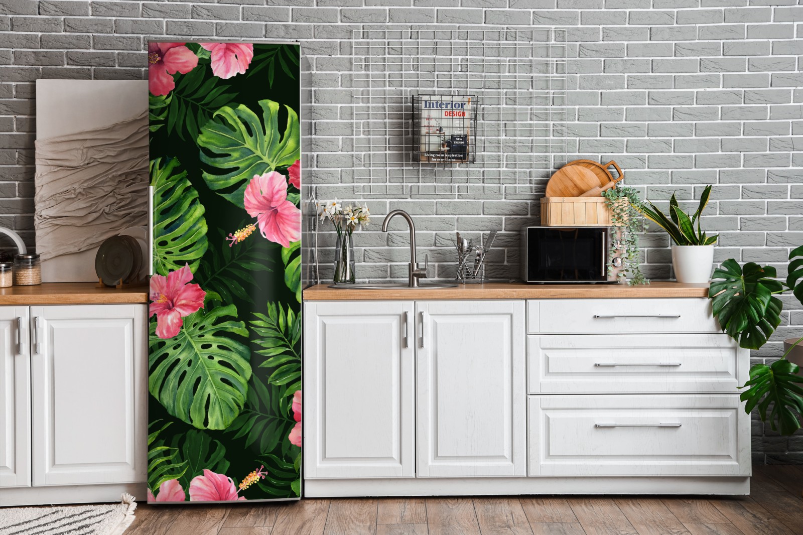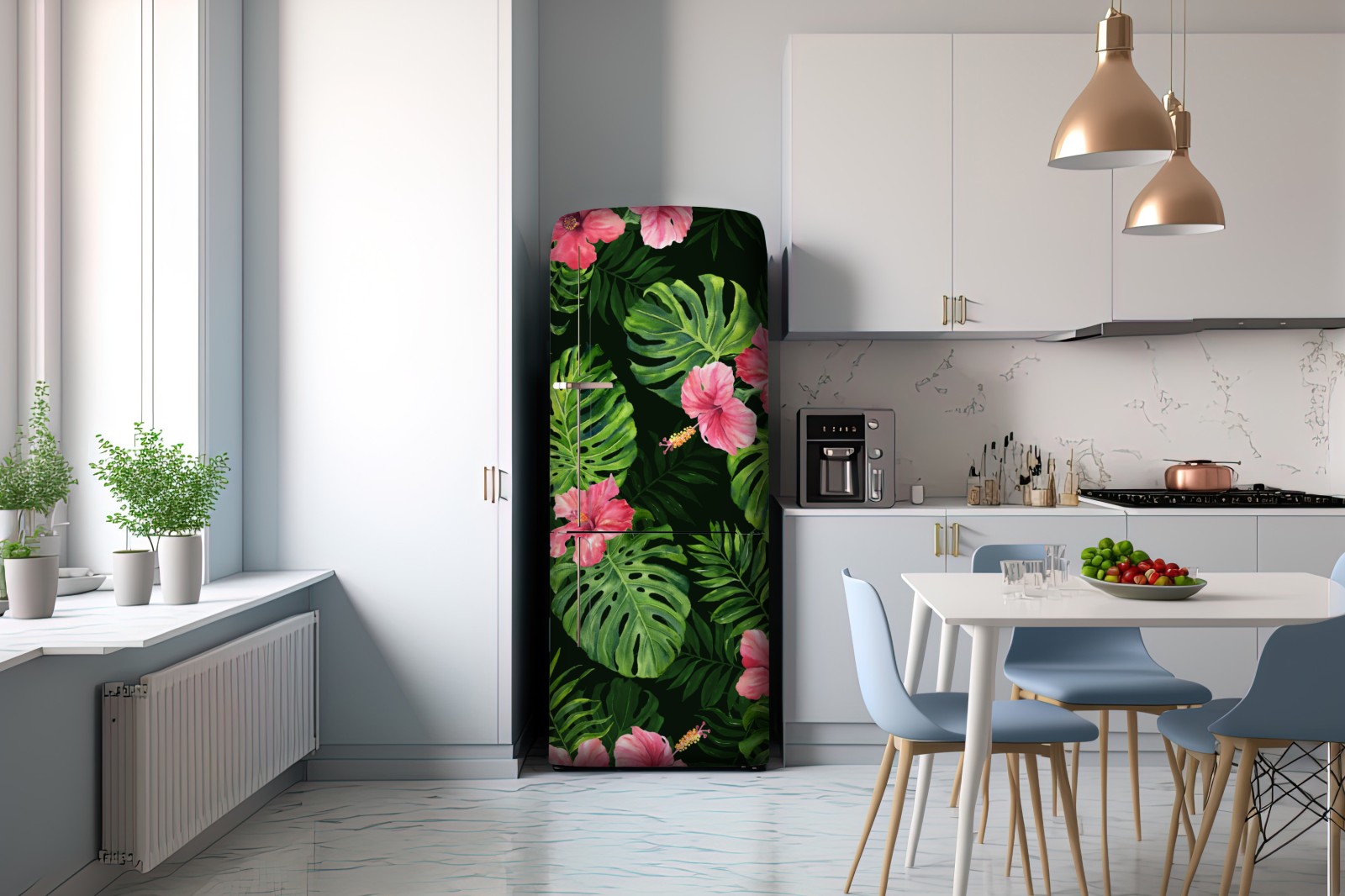 Kühlschrankaufkleber tropisches monstera- und hibiskus-motiv