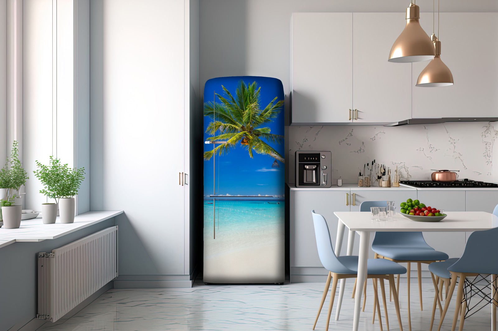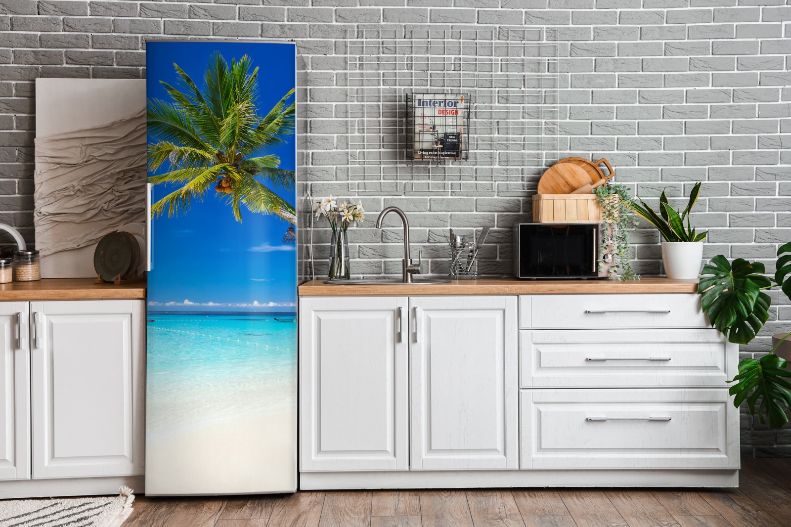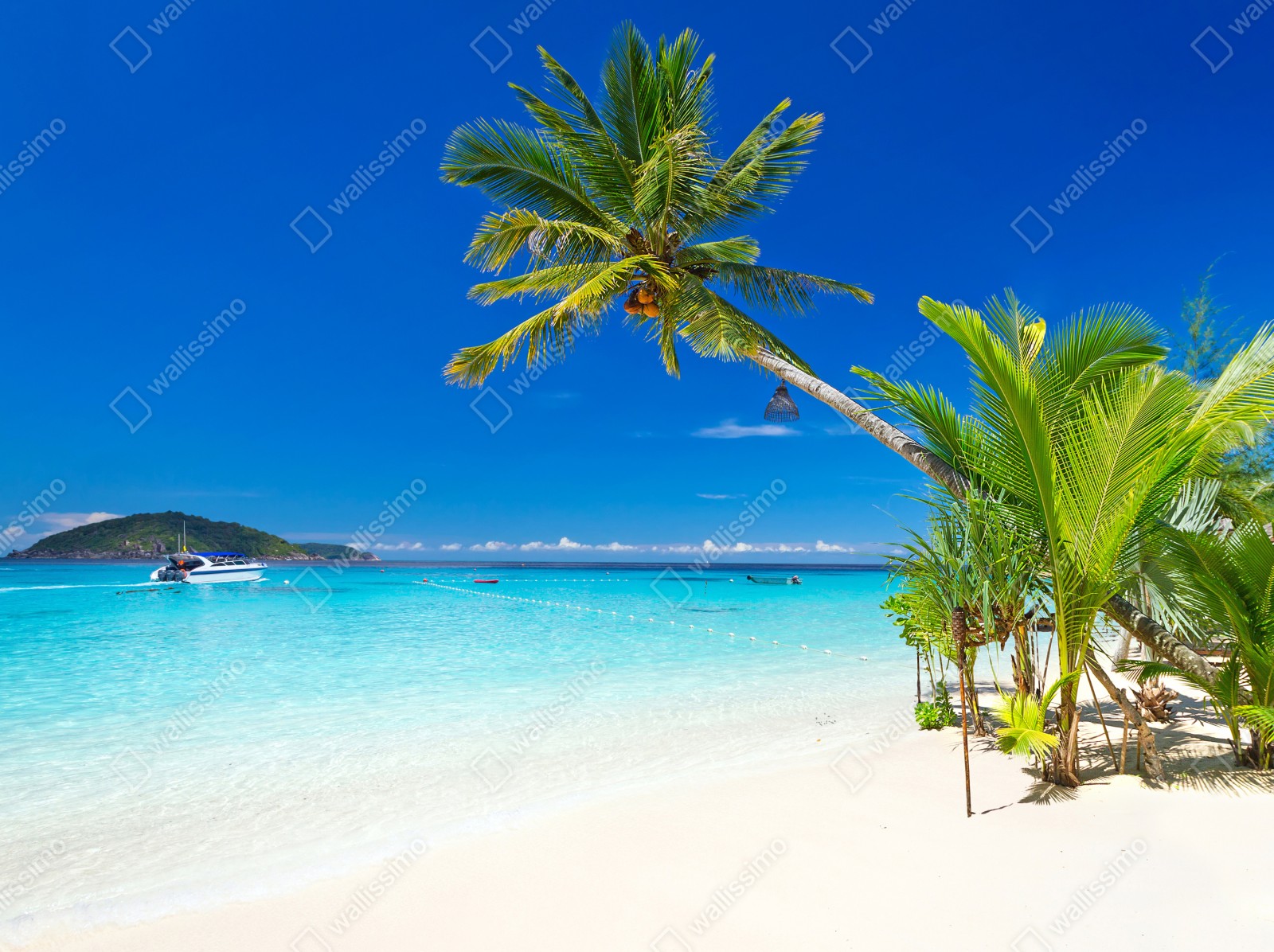 Bringen Sie die Ruhe türkisblauer Gewässer und wiegender Palmen in Ihr Zuhause mit dieser lebendigen tropischen Strandaufnahme aus Thailand.