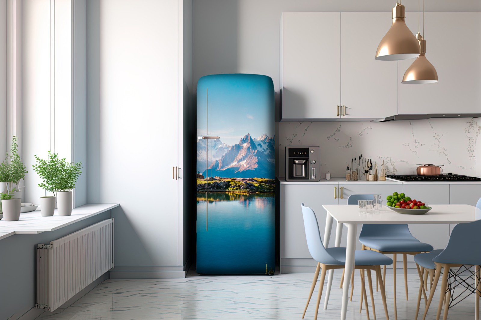 Kühlschrankaufkleber Lac Blanc mit Blick auf Mont Blanc