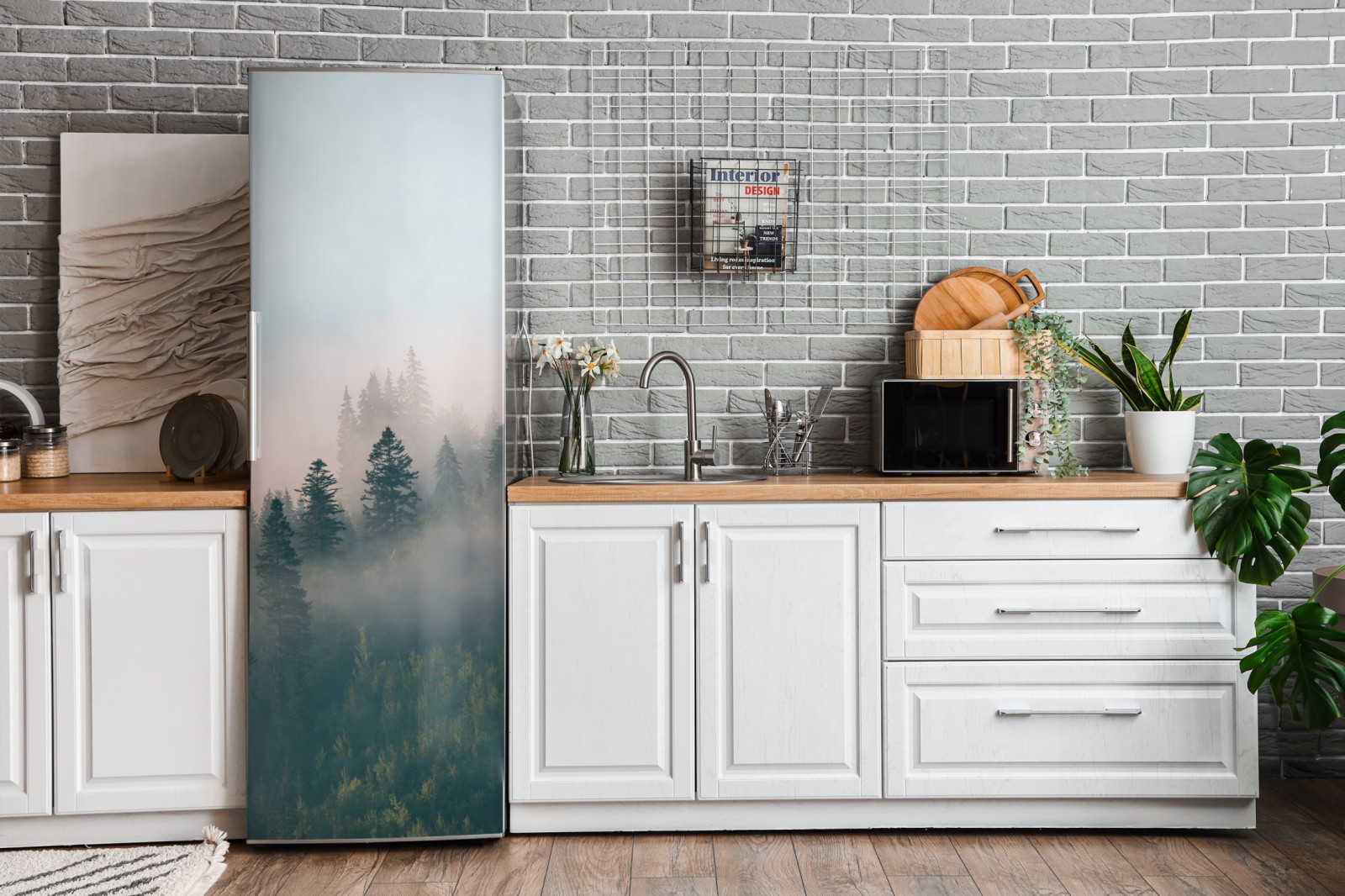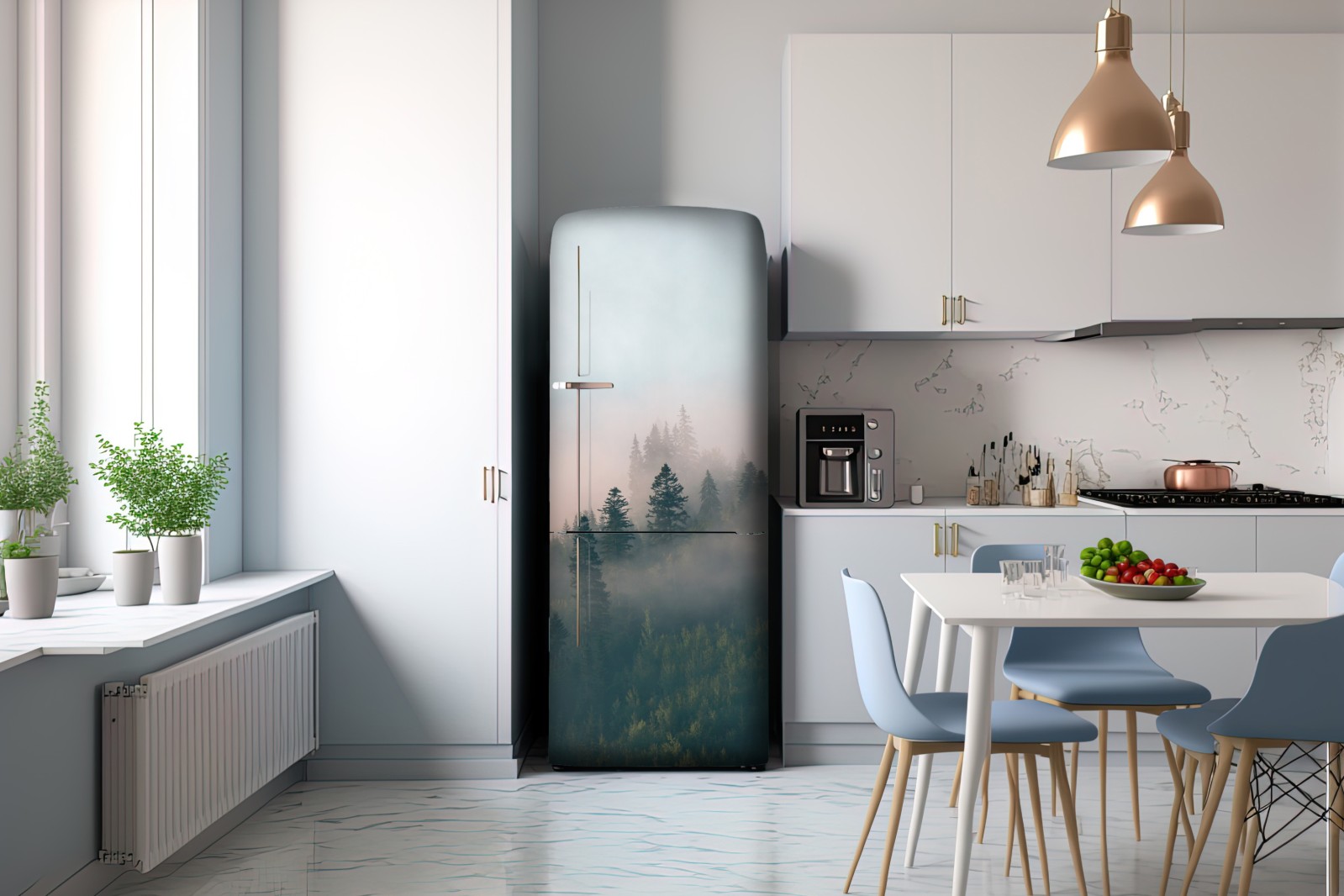 Kühlschrankaufkleber nebliger morgenwald