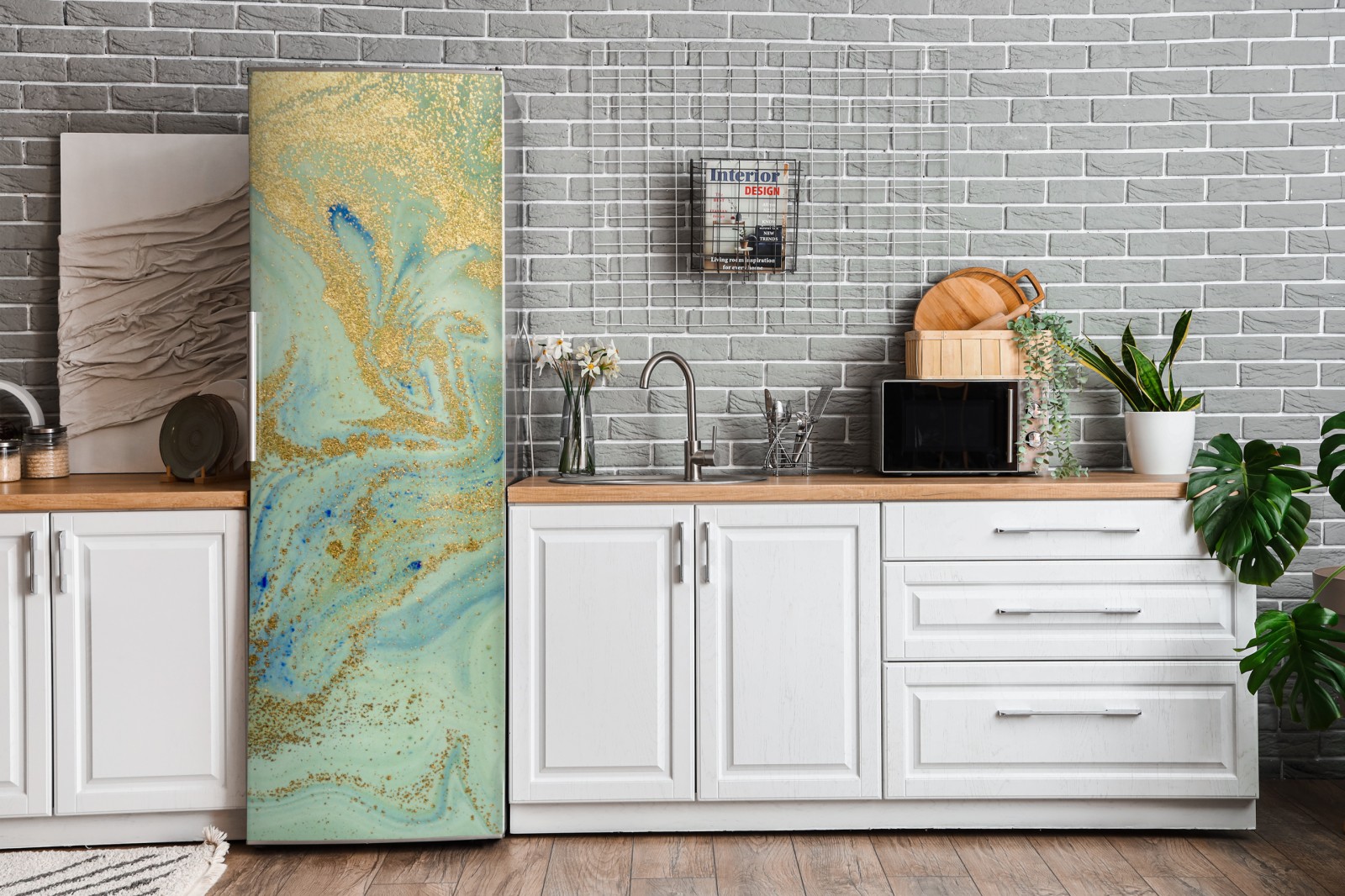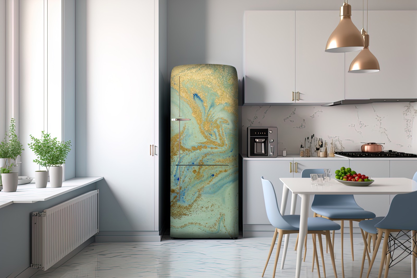 Kühlschrankaufkleber türkiser marmor mit goldenen akzenten