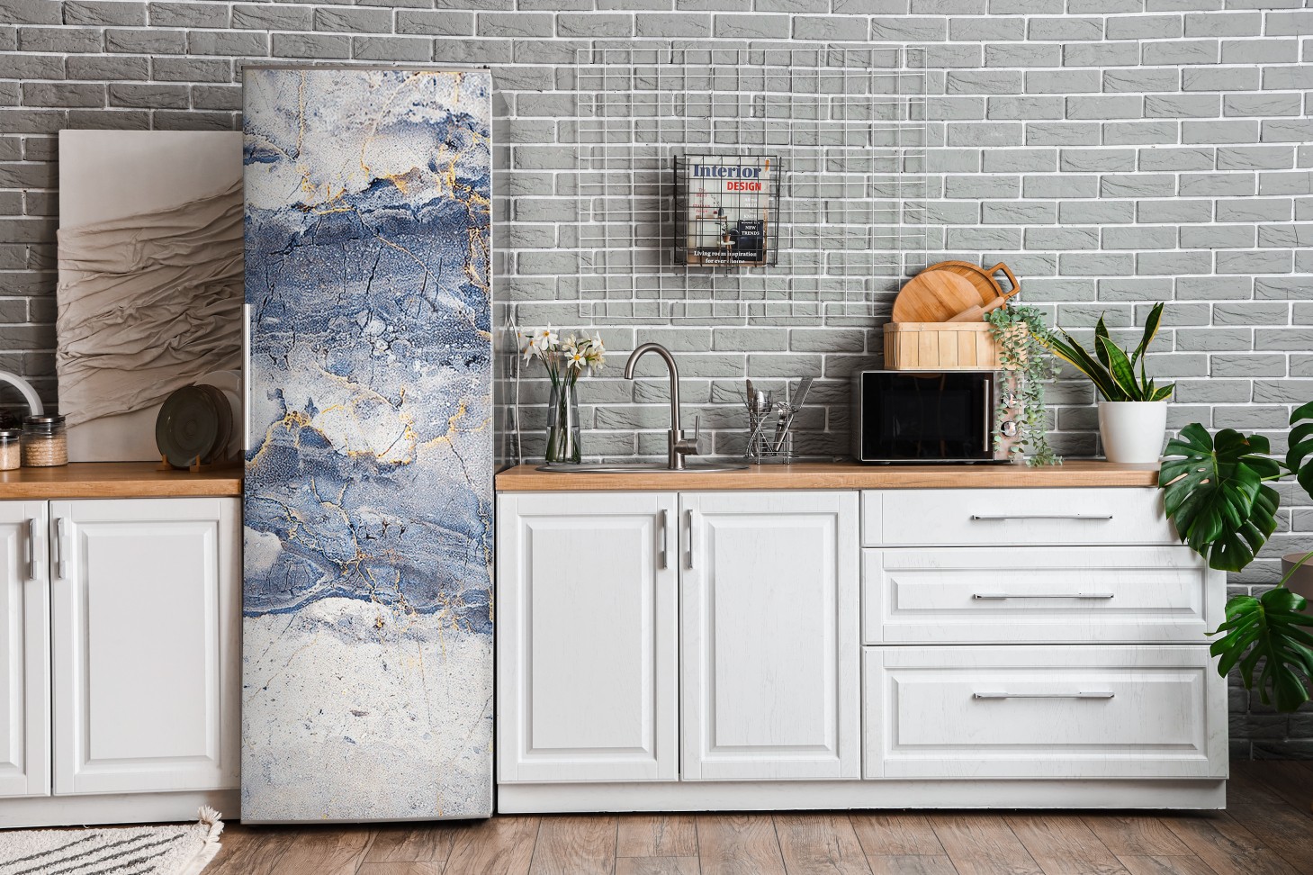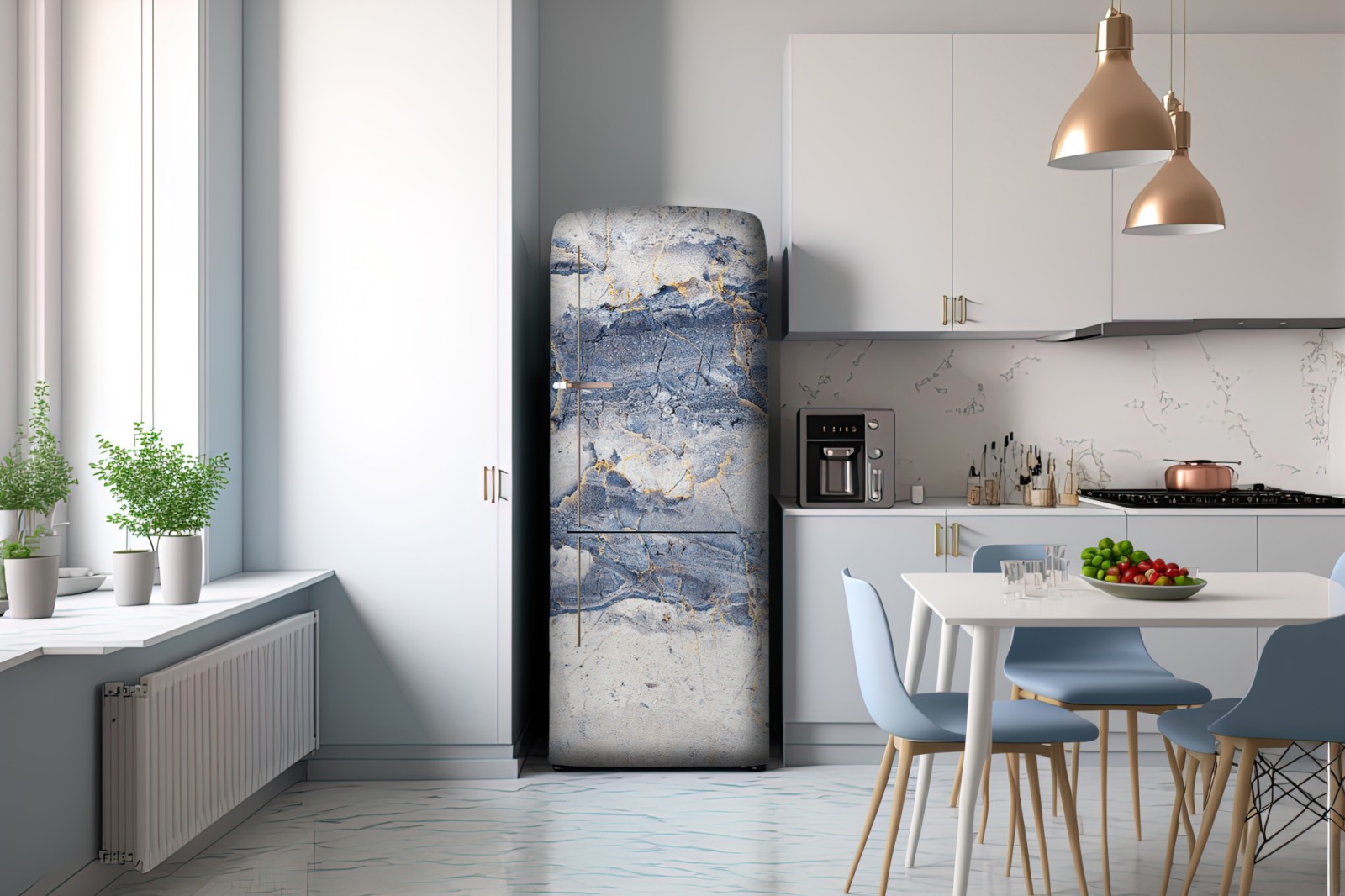 Kühlschrankaufkleber blauer marmor mit goldenen adern