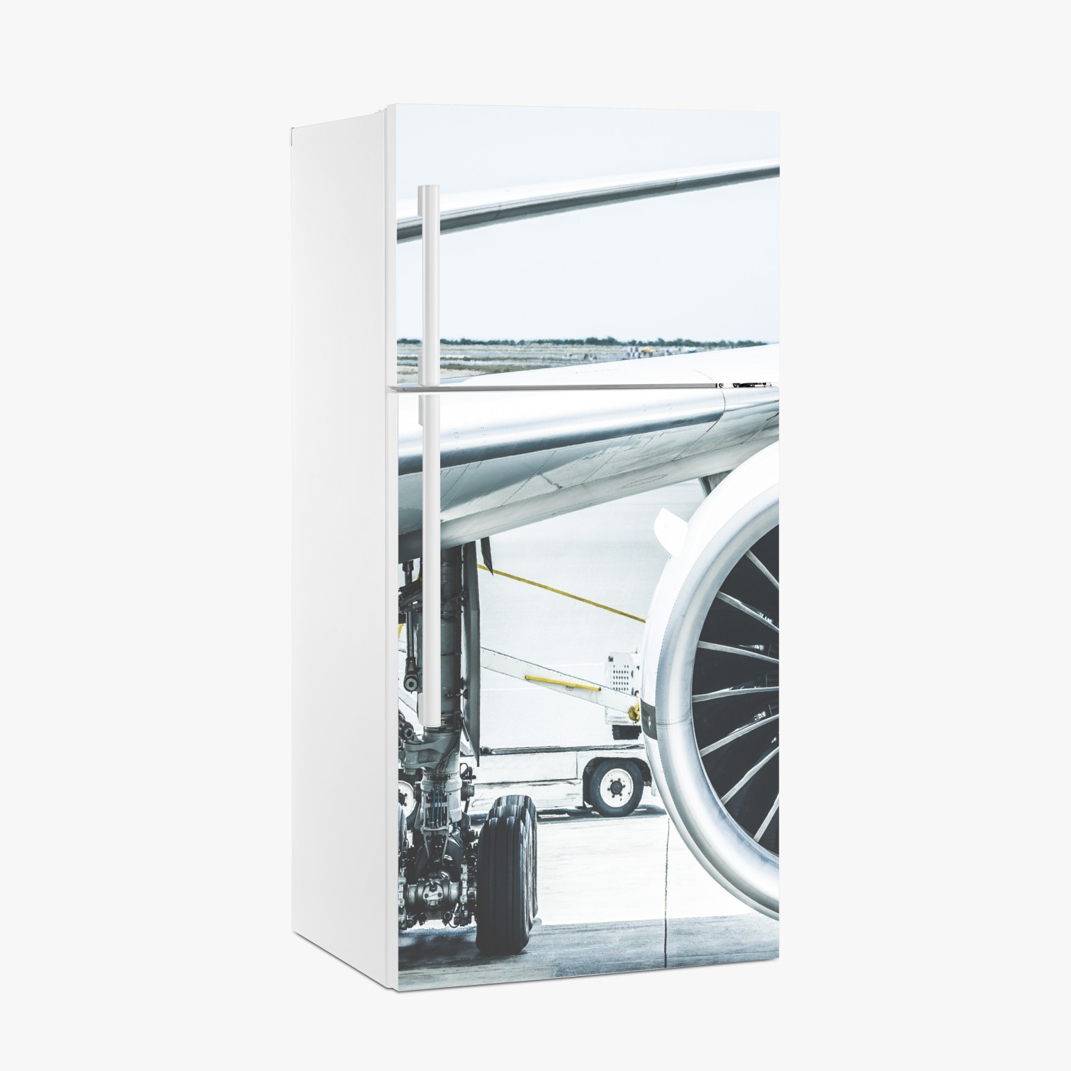 Kühlschrankaufkleber nahaufnahme triebwerk am terminal