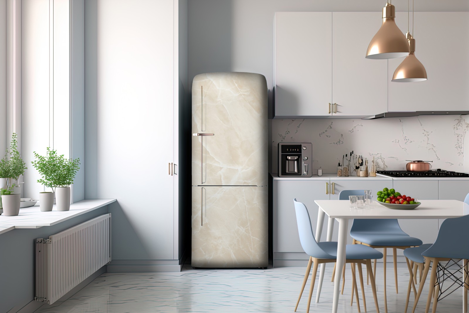 Kühlschrankaufkleber beige marmorstruktur mit weißen adern