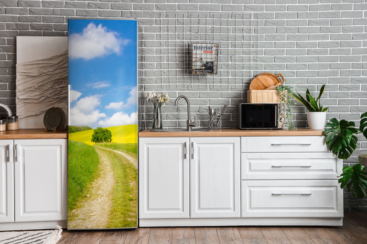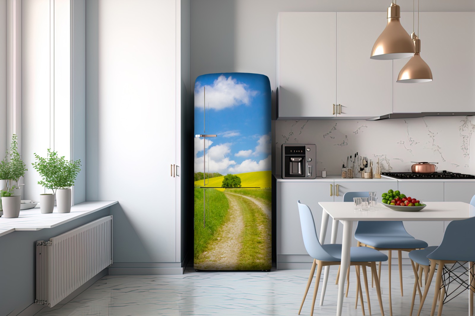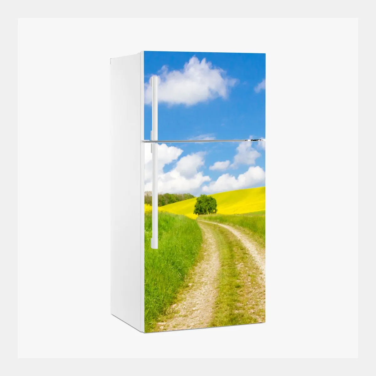 Kühlschrankaufkleber sonniger landeweg durch gelbe felder